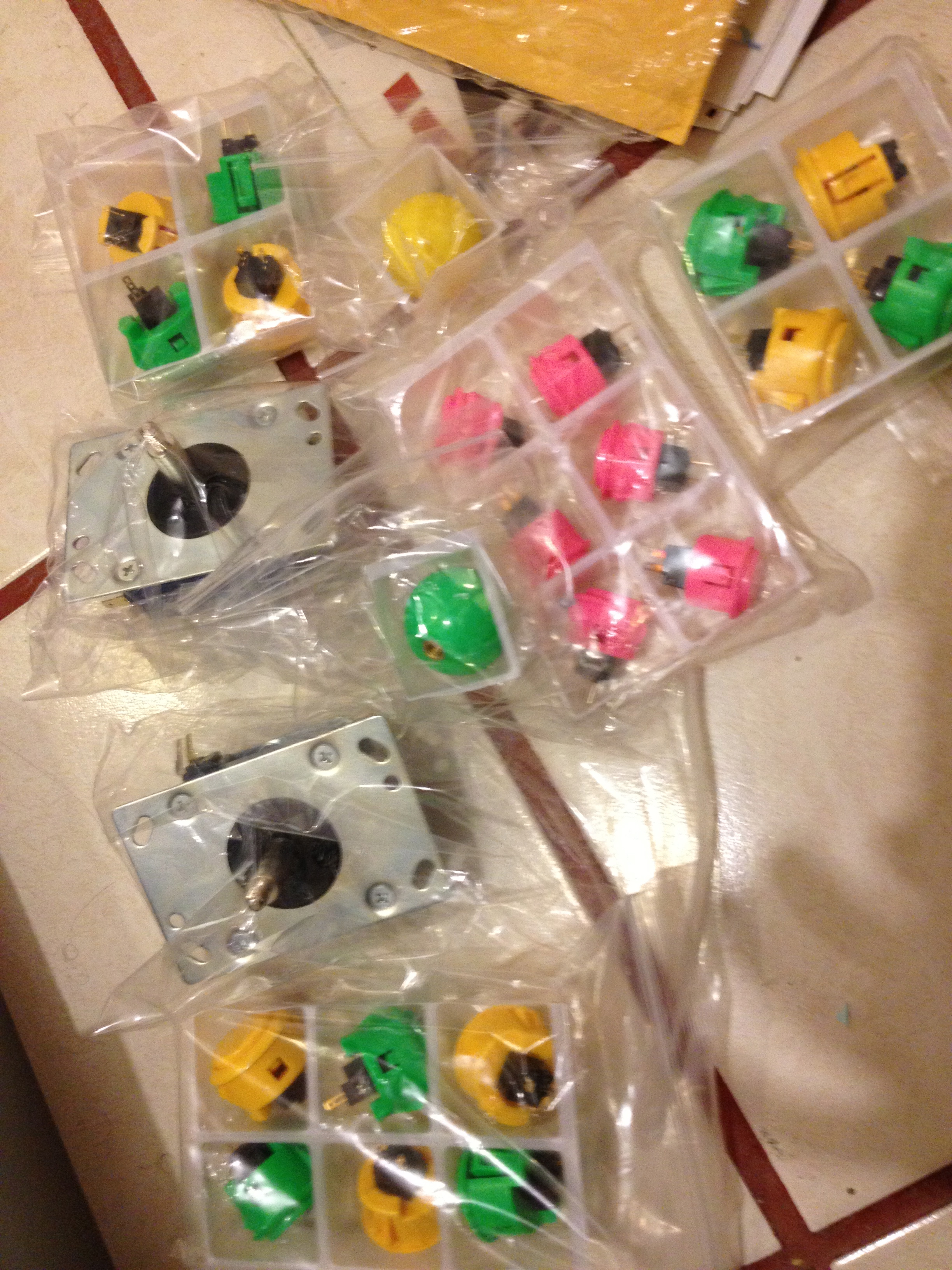 Ahora que ya tengo la Impress en su lugar y mientras encuentro a un técnico para arreglar los detalles del monitor, me puse a buscar en ebay las palancas y botones para la máquina, me fui por dejarla lo más parecido posible a como salió originalmente (palancas y botones verdes, amarillos y rosas los pequeños) compré todo a una tienda en Reino Unido y ya solo me queda esperar a que lleguen (el vendedor anda de vacaciones y procesará mi orden por ahí del 7 de enero).