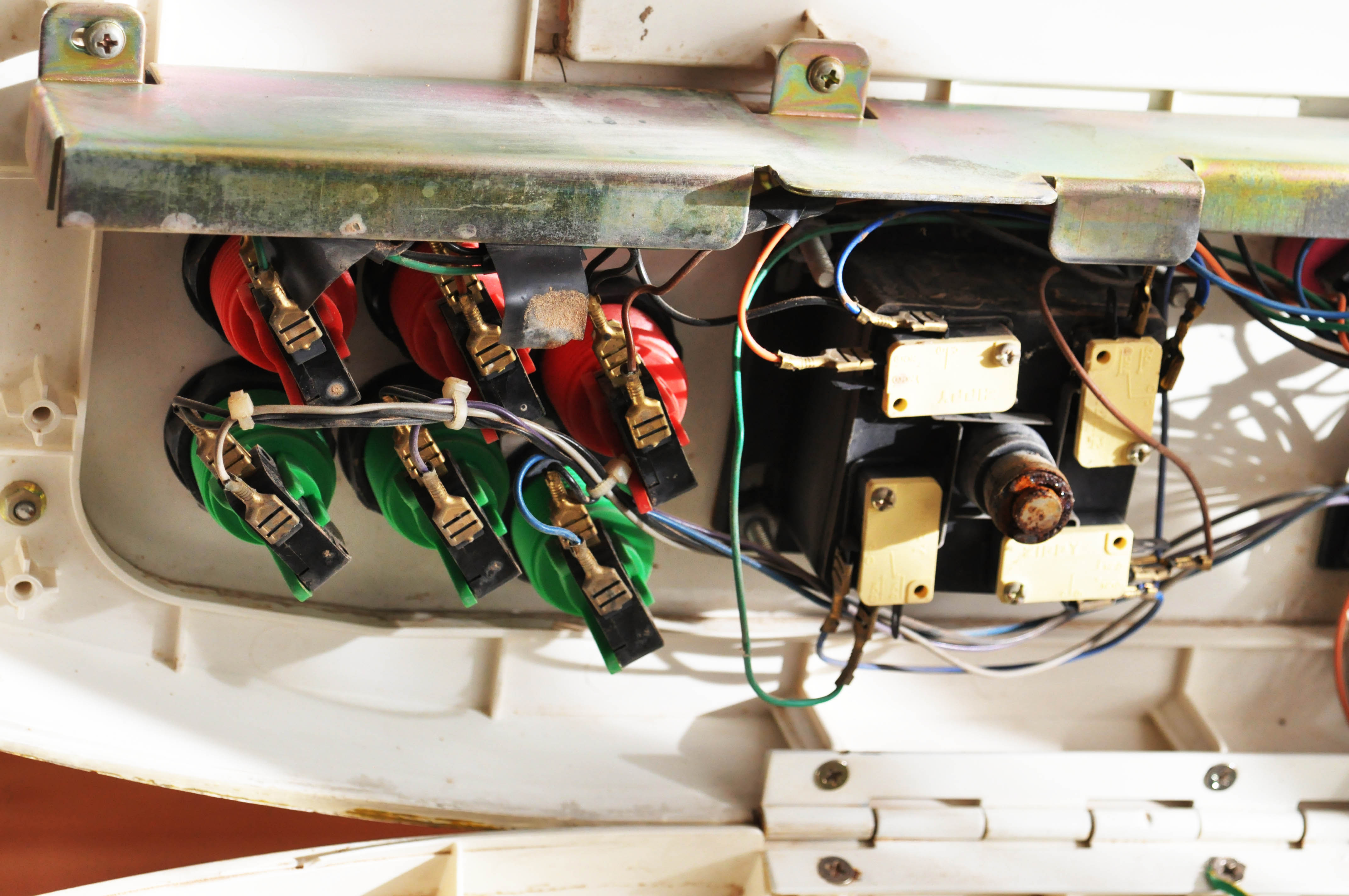 Cableado y vista interna de panel de botones y palancas.
