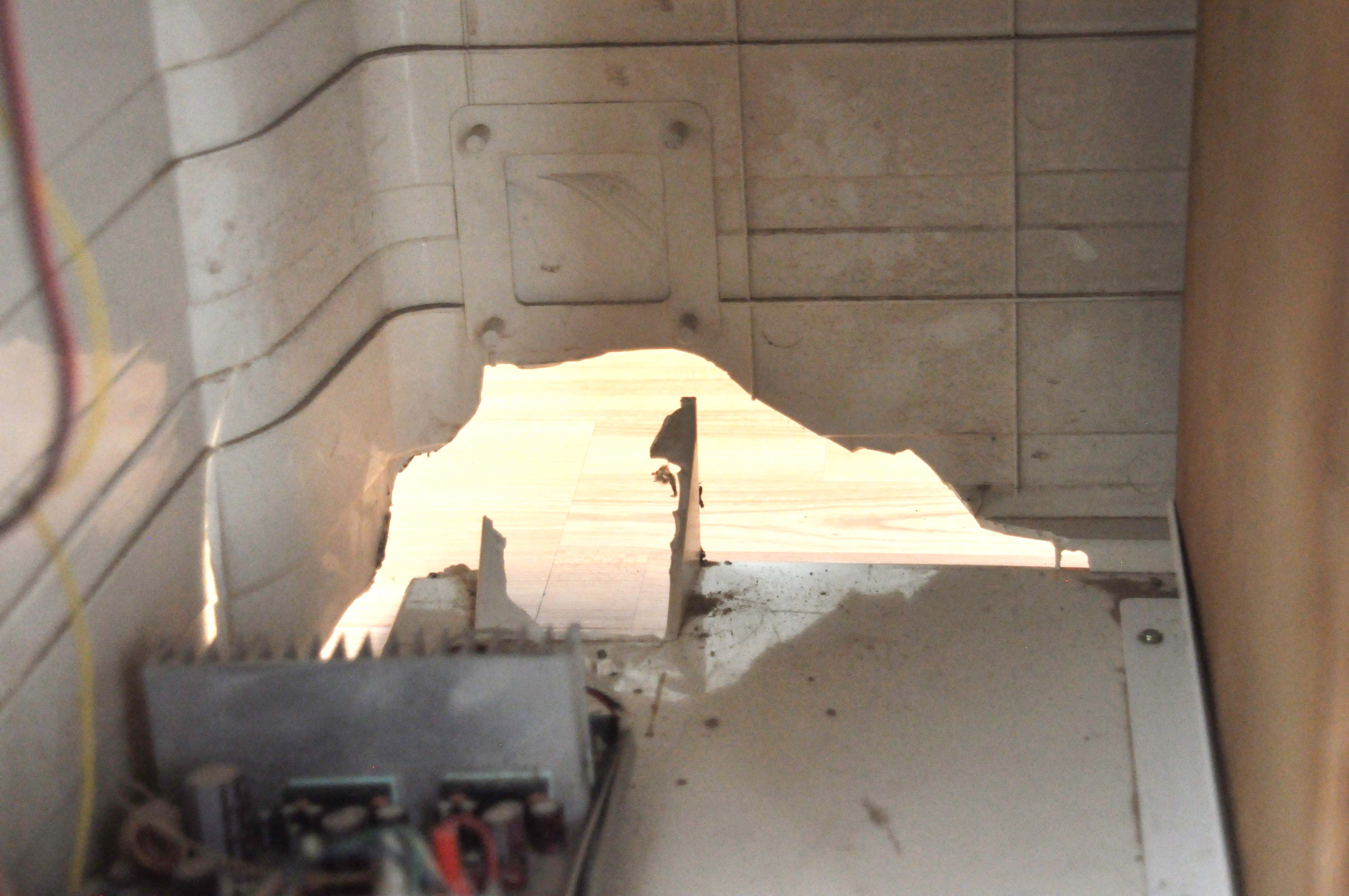 - La parte superior como podrán ver en las fotos tiene un golpe fuerte y falta un cacho del plástico, ahí sí ni idea que hacer, pensaba quizas hacer con mi hermano que es diseñador industrial una pieza resanada aunque no quede igual ya que me preocupa que quede abierto y por ahí se siga metiendo la mugre.