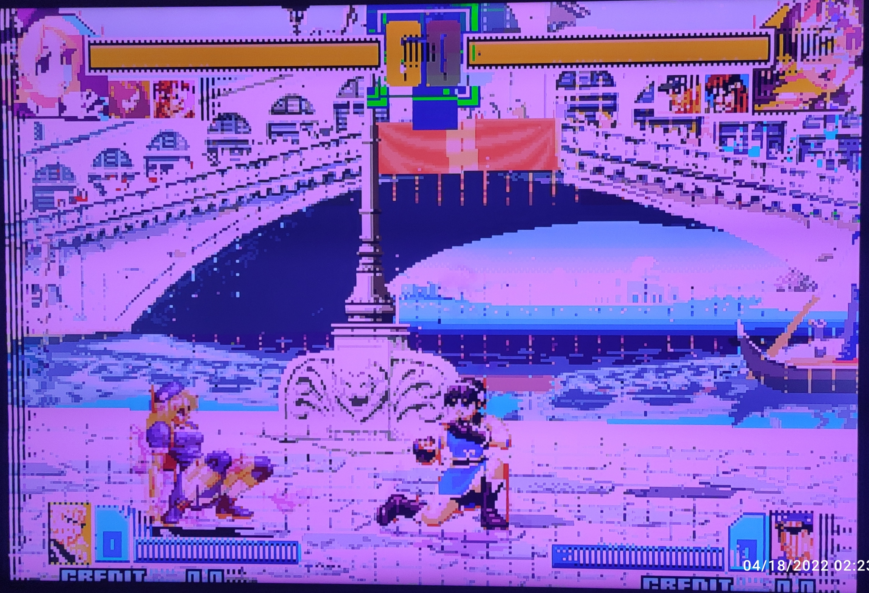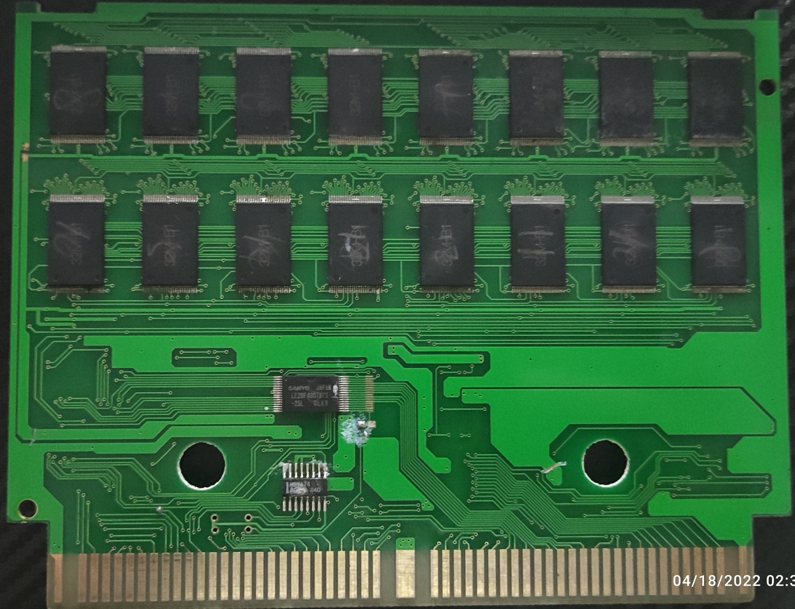 Buen Dia, busco de su ayuda para poder reparar un cartucho MVS de KOF 2001 Bootleg, venia en un lote de juegos, 2 originales y ese bootleg, desde el principio a tenido esas lineas, fue limpiado en general y de los pines, no veo ningún pin roto o pista, el sonido es correcto al igual que la jugabilidad, adjunto fotos de las placas, asi como del problema visual.
