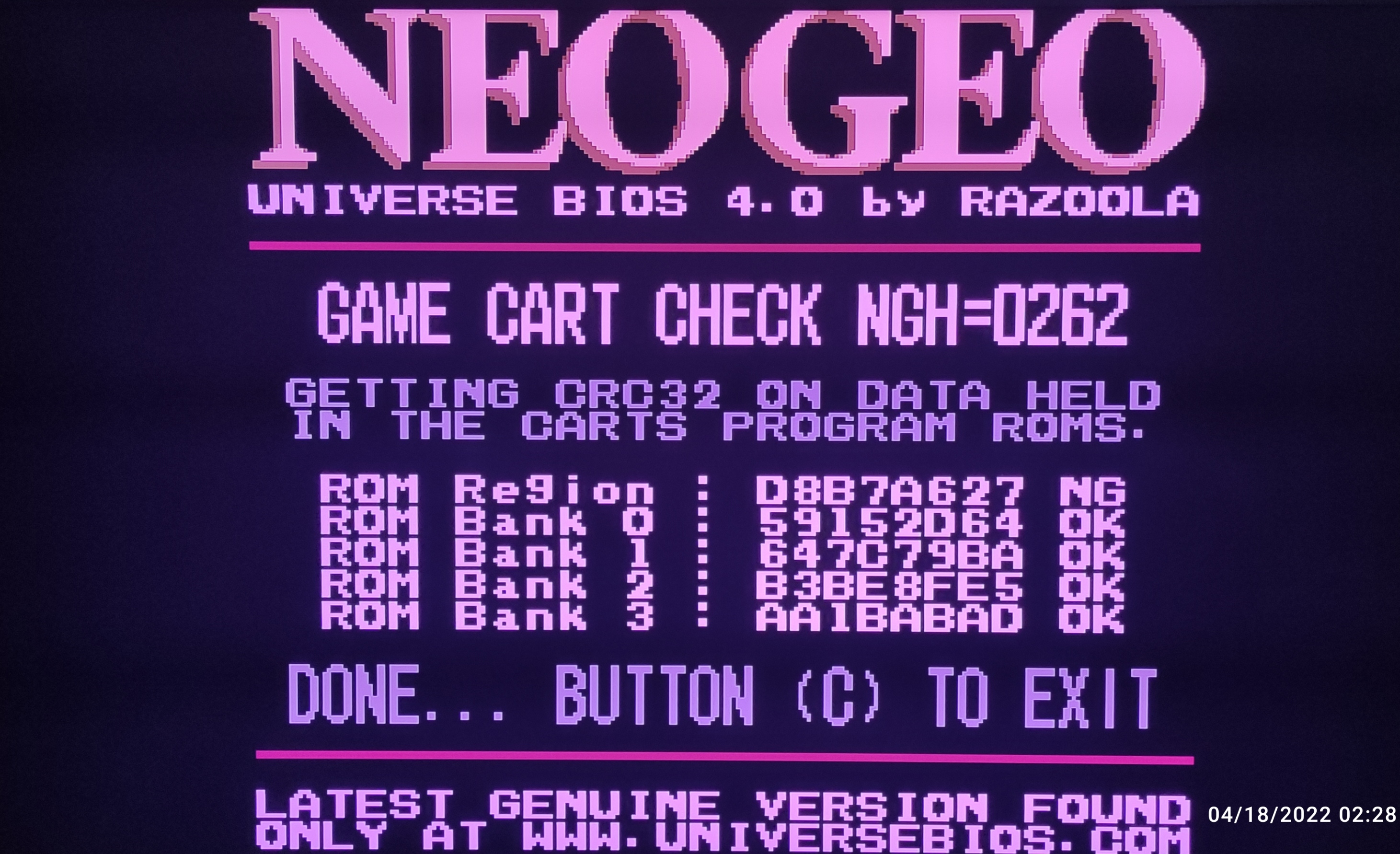 Te está dando un error (NG) en un ROM, esto puede sr porque sea un hack desconocido o porque hay daño.