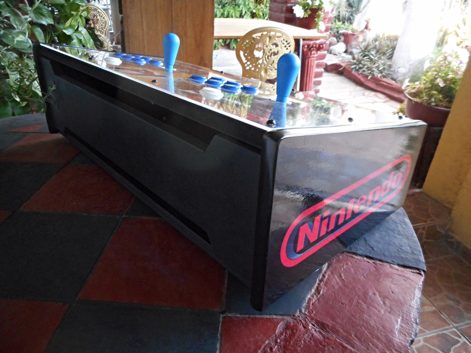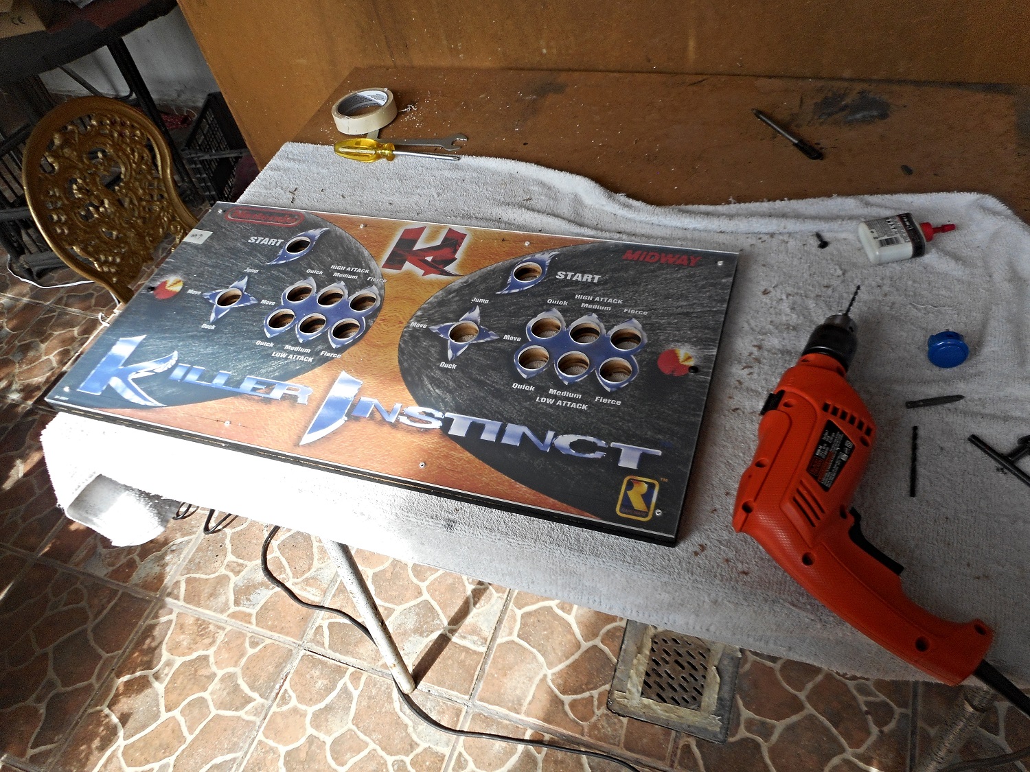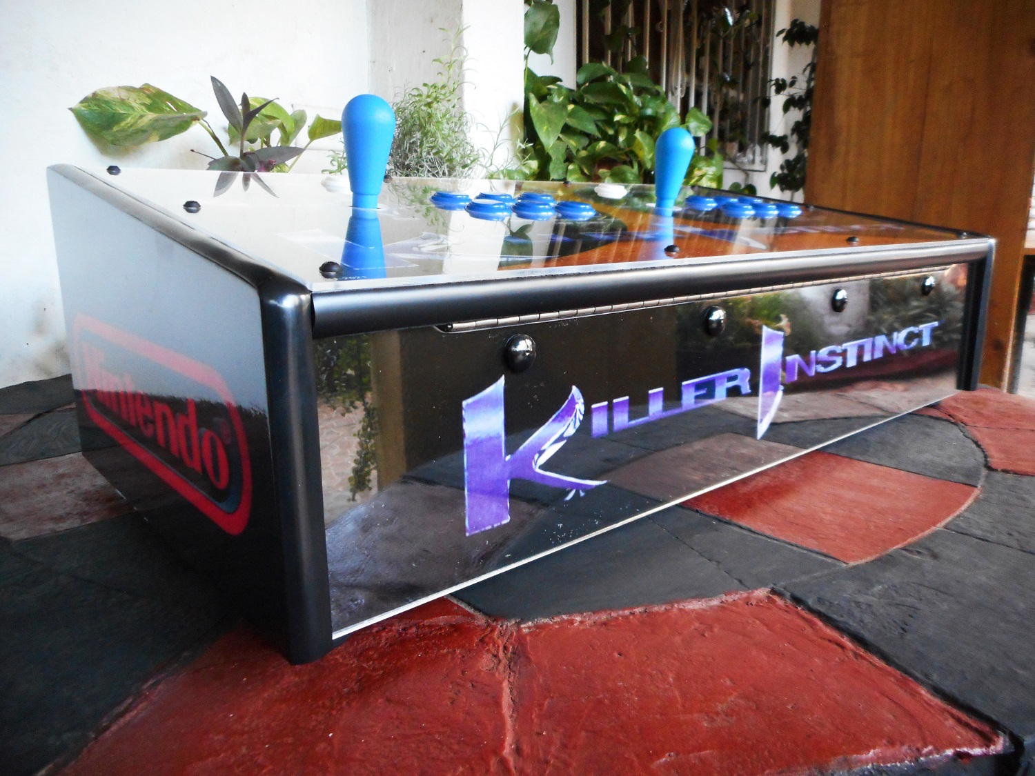 Todo lo que ven en las fotos lo hice yo; los cortes y el anclaje pero no diseñe los artes, los logos de Nintendo y el Killer Instinct Morado solo estan a modo de prueba para ubicar distancias pero se remplazara por unos de alta resolucion estos tendran mucho mejor definicion y color, sin embargo el CPO si es de muy alta resolucion es el arte original respetando colores del Panel original de KI 1994. El proximos dias subire mas fotos del tablero finalizado al 100%, pero ya se pueden apreciar las formas y se puede jugar muy bien como el original.