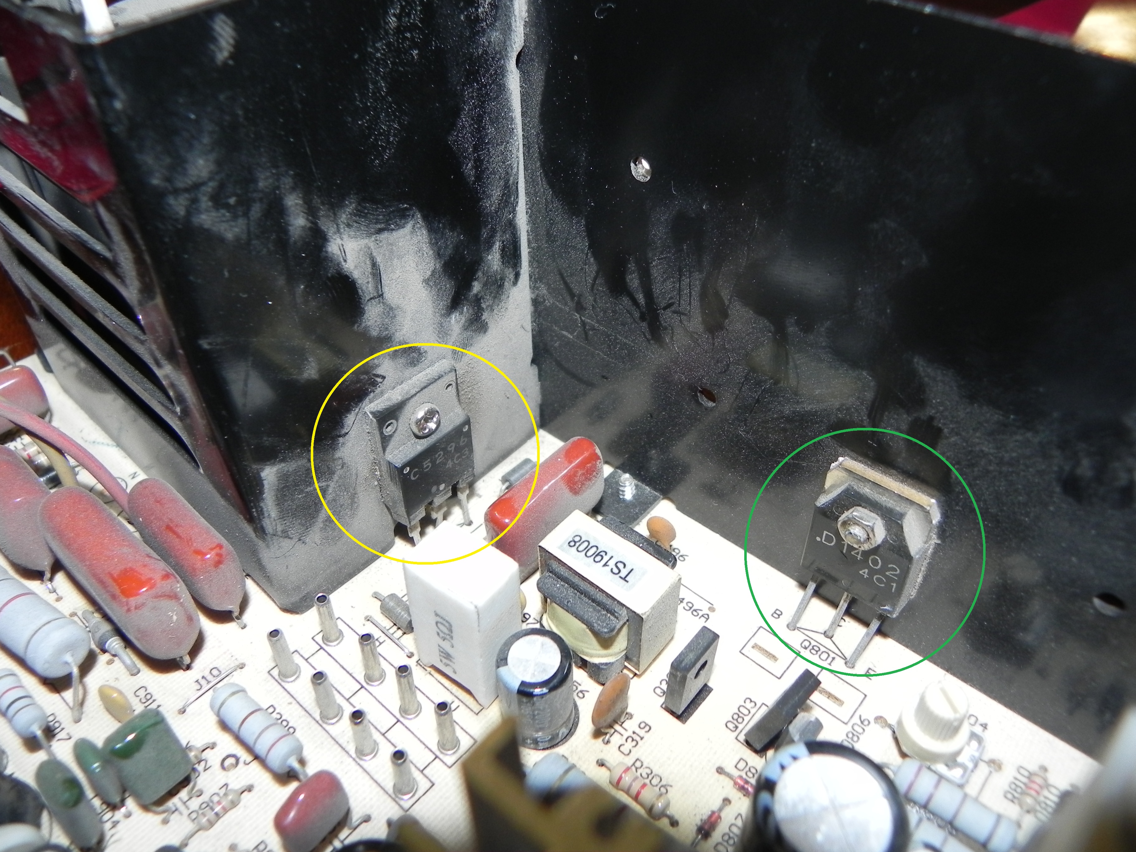La piezas del circulo amarillo y verde son las que me parece están quemadas