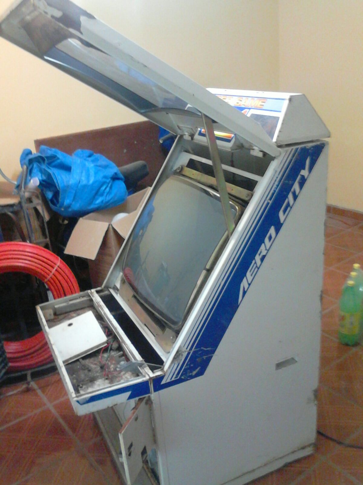 Les comparto una restauración de una de mis maquinas una Sega Aero city, la compre a través de mercado libre, me llamo la atención, por que ya llevaba mucho tiempo anunciada y esta no se vendía, termine comprando dicha maquina, el vendedor me la llevo hasta la puerta de mi casa, fue una grata sorpresa que al revisarla, esta estaba completa en todas sus partes internas, tenia daños en cuanto ala pintura, parece que permaneció mucho tiempo a la intemperie.