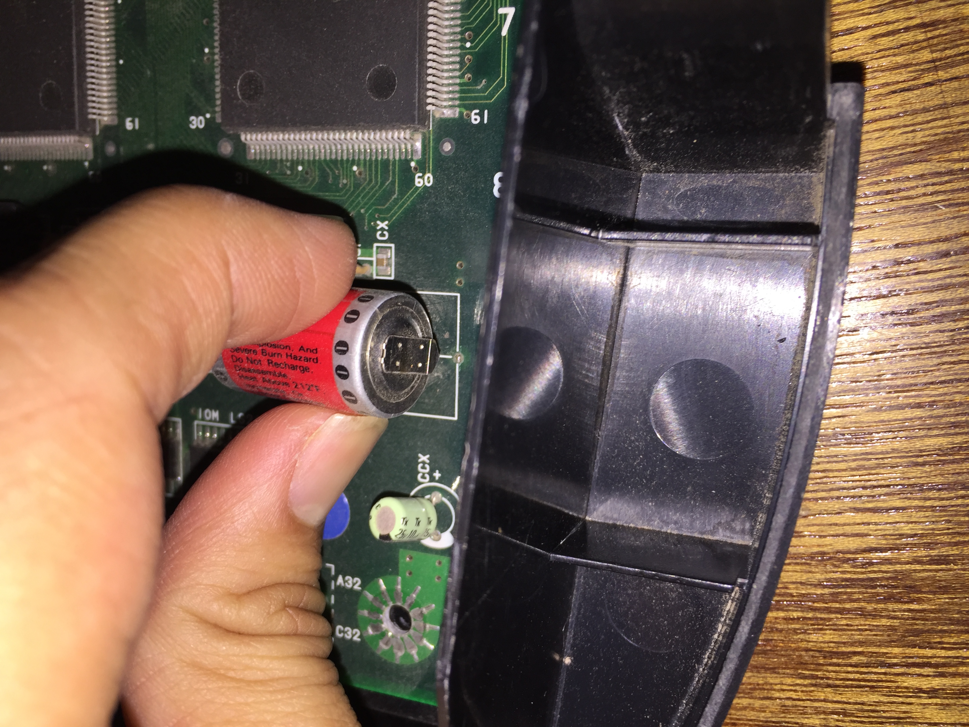 se me vendió como una placa viva, con su funcionamiento confirmado. Supongo que durante el trayecto por paqueteria una de las patitas de la batería original se capó.