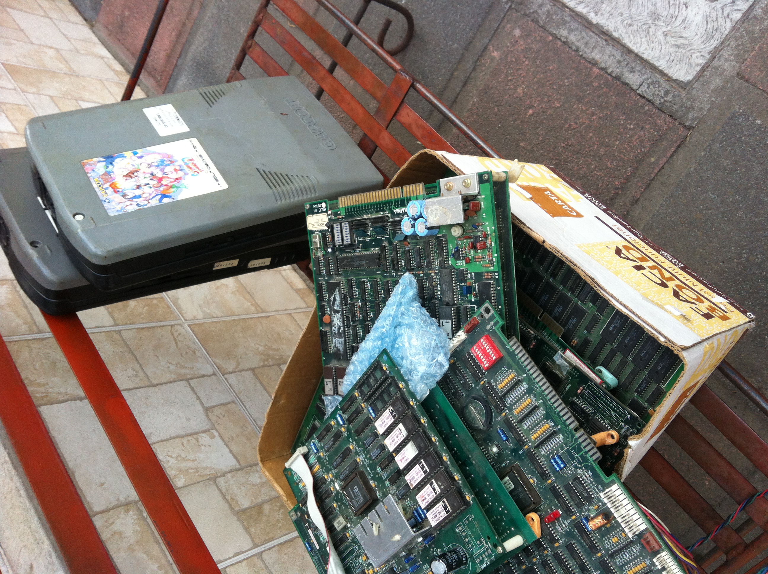 Ahi veo un new challengers, POW , mortal combat 1, Una placa konami, una jamma (creo que zn1 based) y una bootleg al fondo.