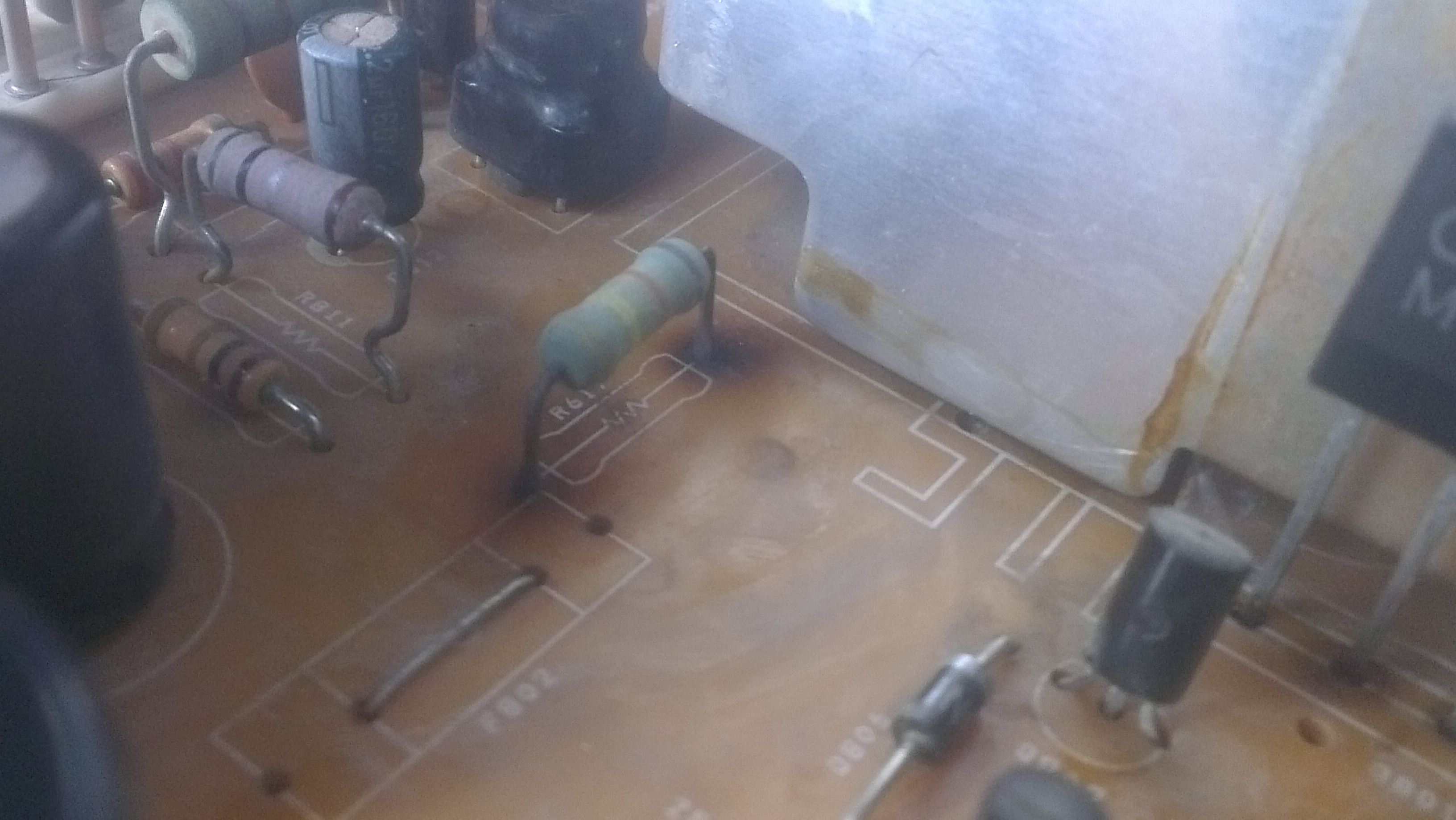 Por hoy parare ya estoy algo fatigado y si parece que ya identifique la falla en el Chasis una de las resistencias parece ponerse al rojo vivo después de un rato seguramente no se uso la indicada en caso de que el hombre que me hizo el trabajo no responda por su mal trabajo, saben como puedo averiguar de que valor es la resistencia correcta para mi chasis (cuando fallo el me dijo que esa resistencia estaba mala así que asumo que la cambio y lo hizo por una incorrecta y por lo tanto esta fallando por lo tanto ver sus valores con el código de colores no creo que sea una opción buena) para cambiarla yo mismo. Ahora también creo que los potenciometros están malos ya que a pesar de que se que el chasis anda mal mi monitor enciende y manda una buena imagen pero ajustarla me es imposible por lo tanto si quiero cambiarlos ahora la pregunta es ¿como identificar los valores de estos con el multimetro? ¿que les mido? (como dije soy noob en esto), ¿donde consigo los potenciometros nuevos? y¿ como los vuelvo a instalar?.