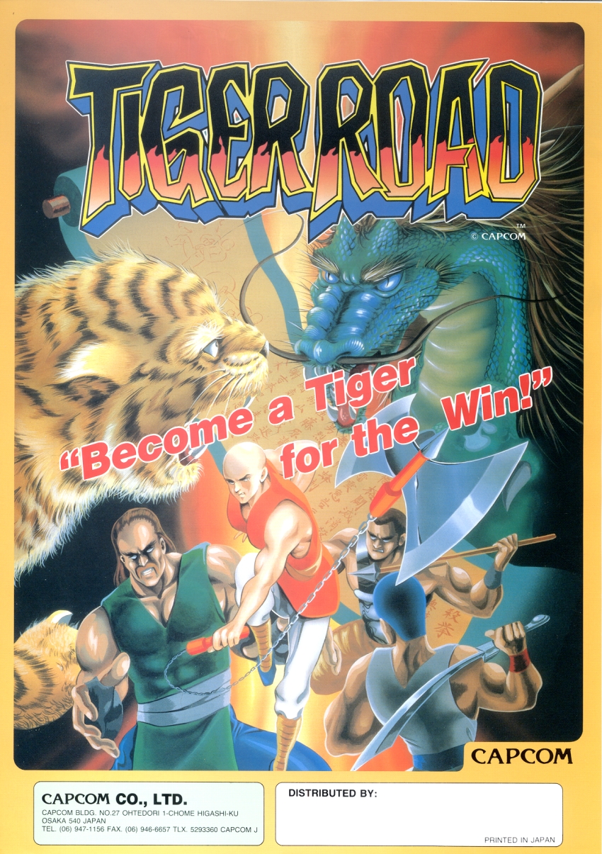 Hola de nuevo; ahora les propongo una maravilla de hack n' slash/platformer para un solo jugador (o dos alternando), desarrollado y publicado por Capcom en 1987; se trata de Tiger Road; que sé que varios miembros del foro ya lo conocen pero muchos otros no (todo mundo conoce los clásicos de esa época dorada de Capcom como Legendary Wings, GunSmoke, Trojan, Black Tiger, Ghosts n' Goblins, Bionic Commando, etc., pero desgraciadamente pocos conocen este juegazo de ese mismo periodo).