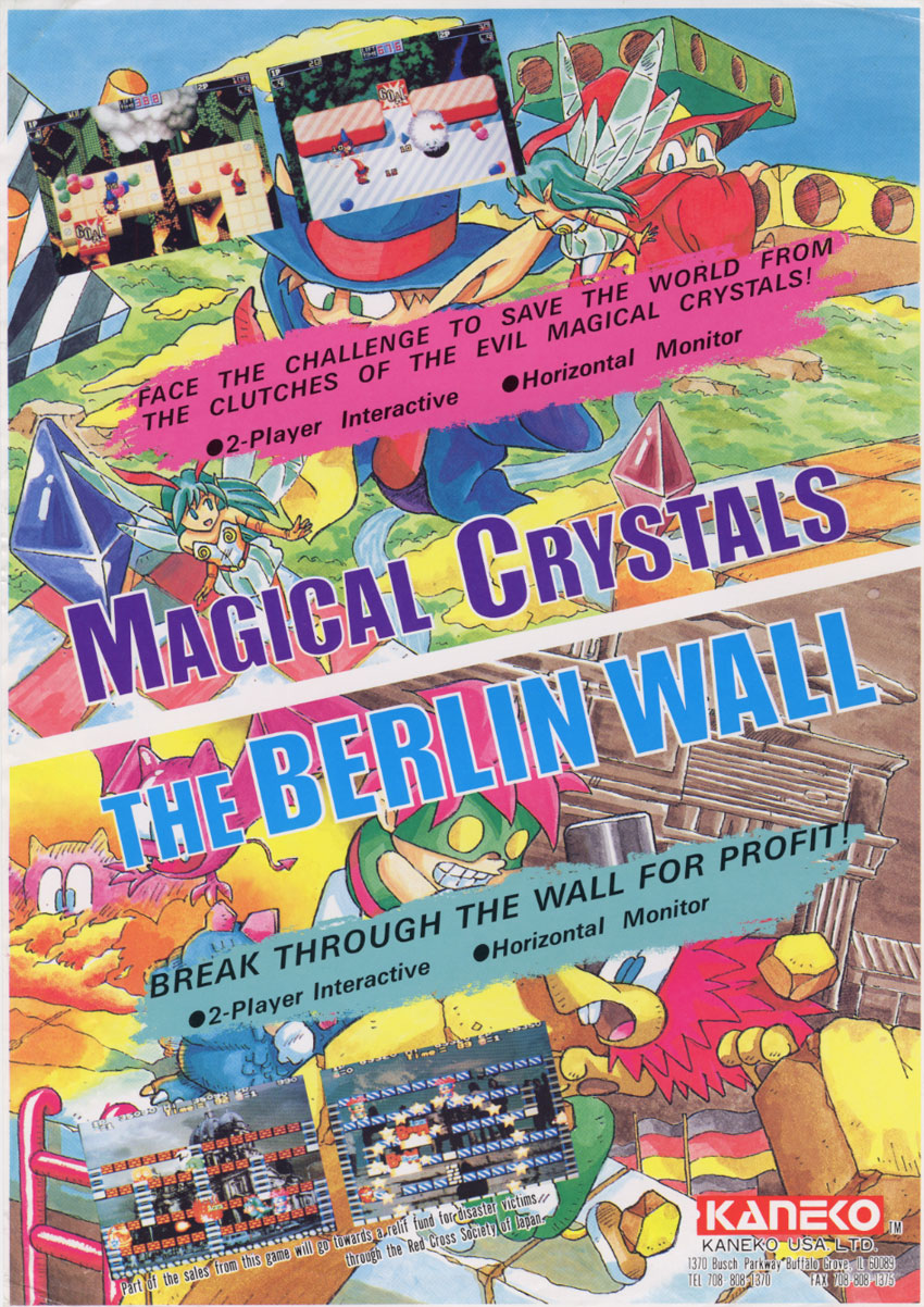 A continuación les propongo un excelente y obscuro cute run n' gun/platformer vertical (top view) para dos jugadores simultáneos, desarrollado y publicado por Kaneko en 1991; en él controlamos a un pequeño mago (azul y rojo), que tiene que ir a liberar a sus amigas hadas que han sido aprisionadas dentro de varios crystales a lo largo de los niveles que componen el juego; cada nivel tiene su respectivo jefe; usamos dos botones además de nuestro joystick de 8 posiciones, con uno disparamos y con otro saltamos; hay varios items y power ups a lo largo de cada nivel.