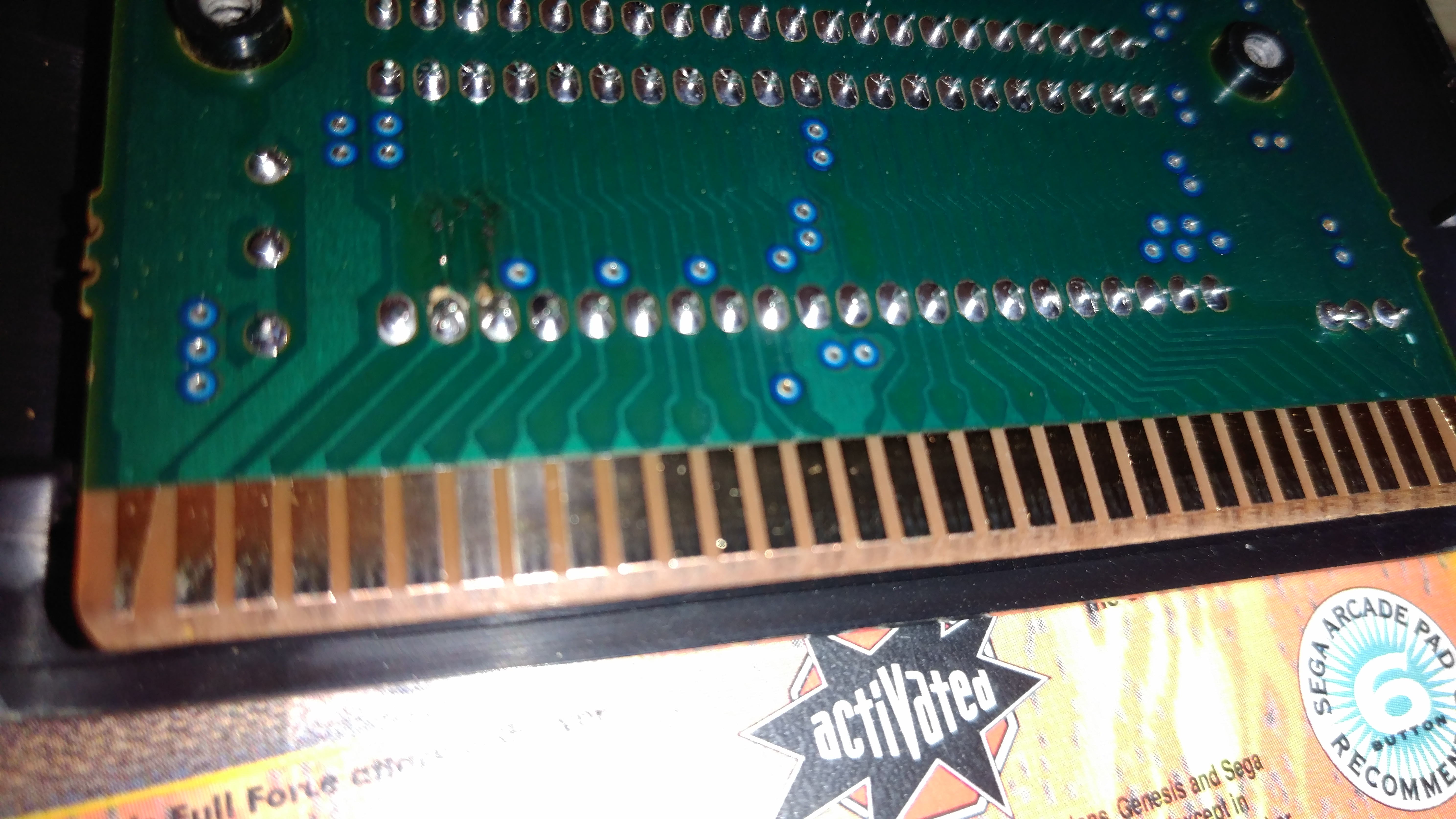 en otro foro me dijeron que era la entrada de los cartuchos que no estaba haciendo con tacto con algún pin.la limpie y ajuste y el problema sigue,el cartucho esta perfecto porque tengo un retrofreak que importe de japón lo uso principalmente para jugar mis juegos japoneses con traducciones que hacen los fans y también para probar juegos. haciendo una copia de la rom. copia el eternal perfecta en juegos dañados da errores de lectura, la entrada de cartuchos de la consola no es de muy buena calidad todos los cartucho deben estar limpios para que funcionen y juegos como el gargoyles ni funcionan