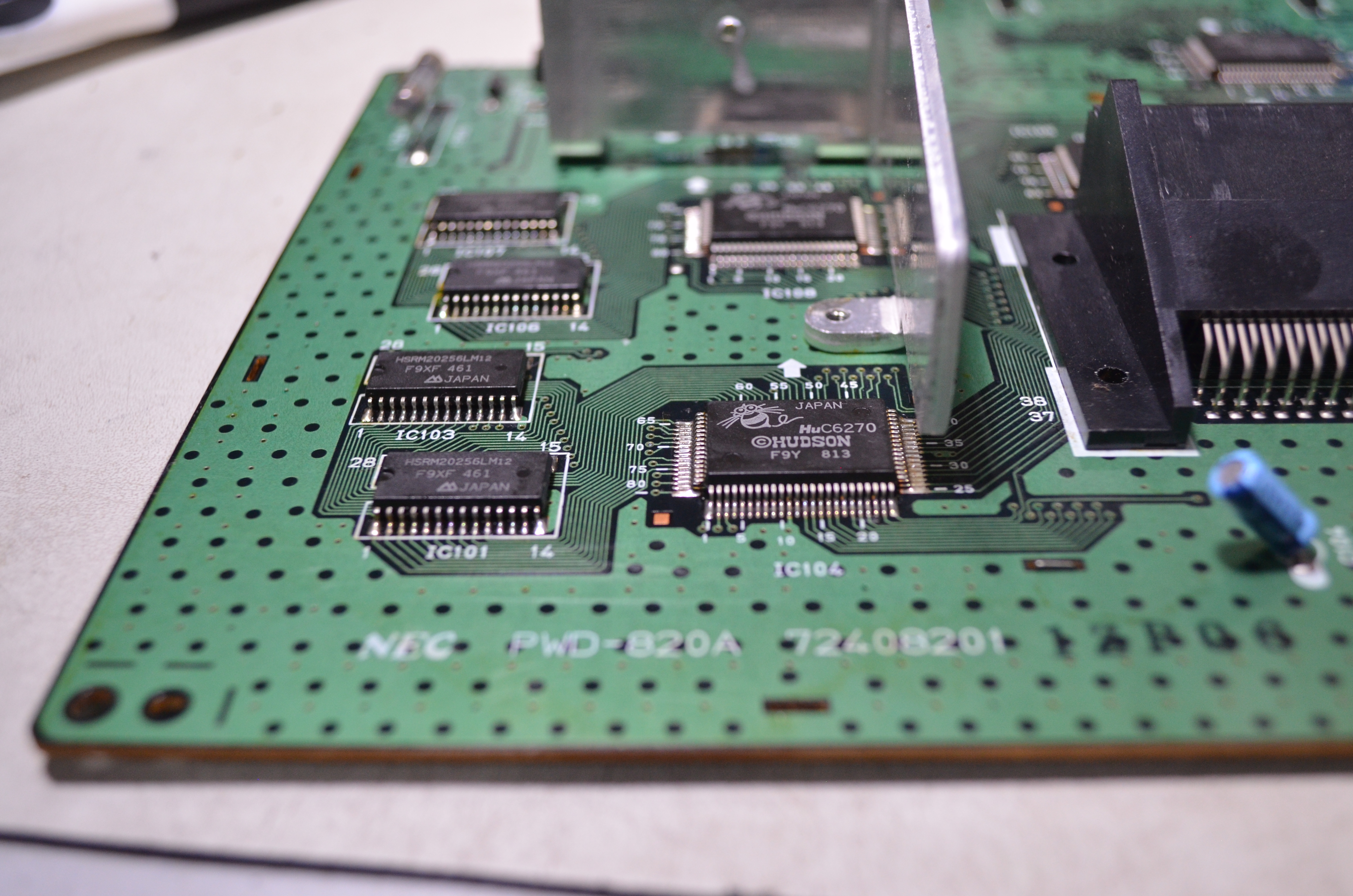 Hola a todos el día de hoy vengo con un problema que nos encontramos en un consola que se compró recientemente resulta que se adquirió un Súpergrafx para usarlo junto con un SD System 3 se compró en MercadoLibre y el cuate que lo vendió comento que tenía mod RGB por lo que me la pasaron para quitarle el mod ya que si se conectan así el Super SD System 3 y el Supergrafx con Mod puede haber problemas debido a la doble amplificación de las líneas de video. Por lo que abrí la consola y me encontré con un mod de esos de terror que termina reparando Voultar en su canal. Tenía cables mal puestos y cometieron la locura de cortar la pista de compuesto para poner la línea de Sync por ahí. Bueno pensé que solo sería quitar la placa está y listo pero o sorpresa cuando la retire me lleve una muy desagradable sorpresa. Soldaron las líneas de RGB para el mod directo al Chip HuC6260 (cosa que no entiendo por qué se ve que tenían poca experiencia por que hacerlo ahí en lugar de en el puerto de expansión pues no lo sé) y calentaron tanto la zona que las patitas del chip se levantaron y dañaron otras a su alrededor. Intente reconstruir las pistas con cable a unos pads dónde llegaba cada línea y de ahí van directo al puerto de expansión (verifique continuidad desde el chip hasta el puerto de expansión y está bien para cada línea de color y Sync y según el esquemático está correcto que vayan directo del chip al puerto de expansión) pero a pesar de ello al conectar una placa externa para RGB en el puerto de expansión no consigo que se muestre vídeo. Ya revise posibles puentes o algo y nada todo está bien solo se le ocurre que con el severo daño a los pines adjuntos algo extra se daño y por lo tanto la consola no saca RGBS, ya probé con compuesto y funciona perfecto. Ojalá alguien me pueda ayudar a revivir el RGB de esta pobre que sufrió bastante como puede ser que alguien ponga epoxico sobre una placa :( ni hablar les dejo fotos y quedó al pendiente de su ayuda.