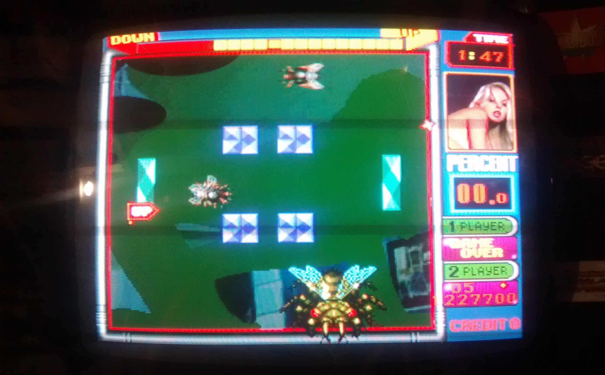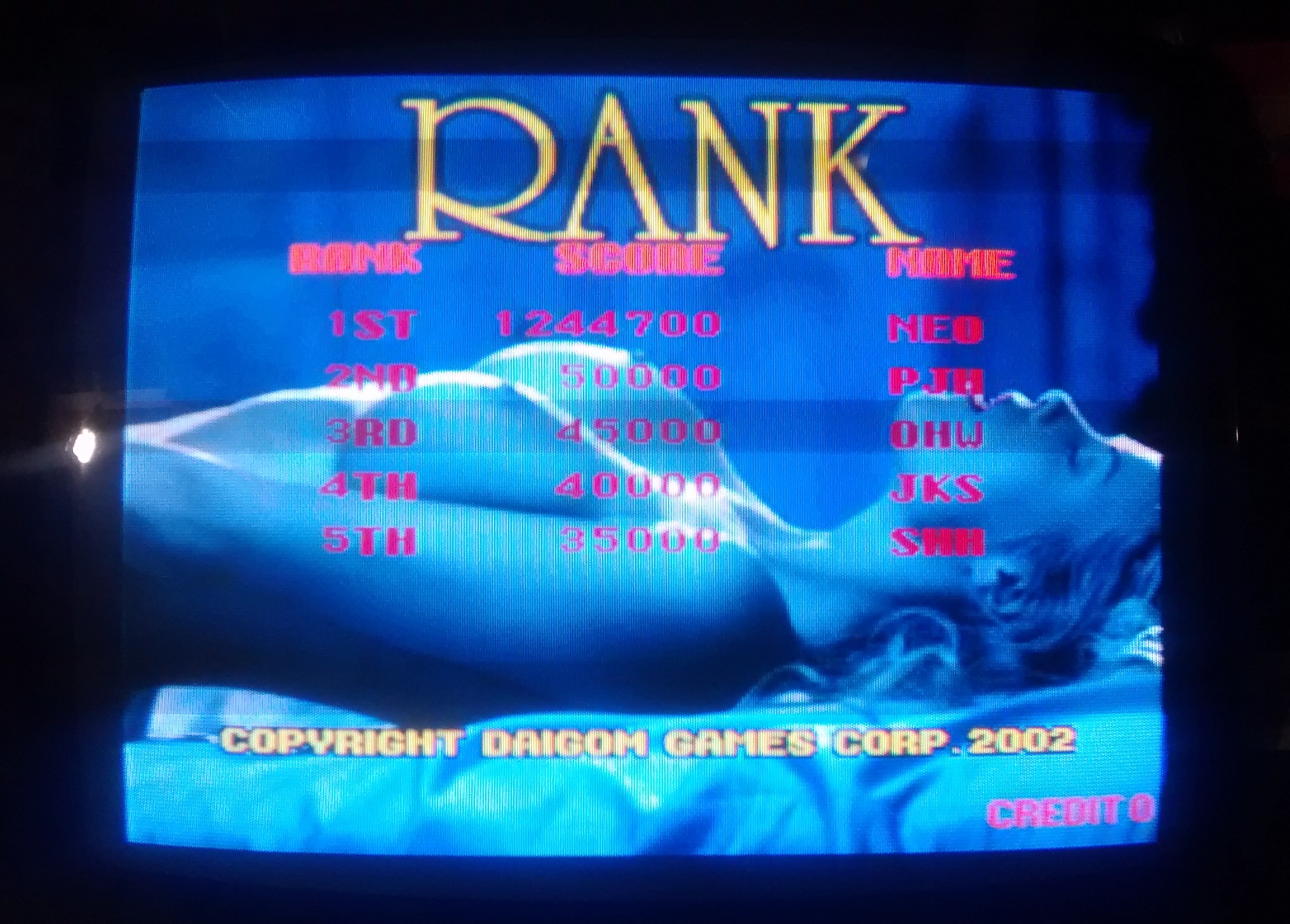 En un intento por ver si en este Eroge de las arcades se podia saturar el contador de puntos al llegar a 999,999; me encontre con la sorpresa de que NO ES ASI XDDDDDD Sin embargo yo creo que los programadores no pensaron en que esto podia ocurrir y los puntos empiezan a invadir el area donde se desarrolla el juego.