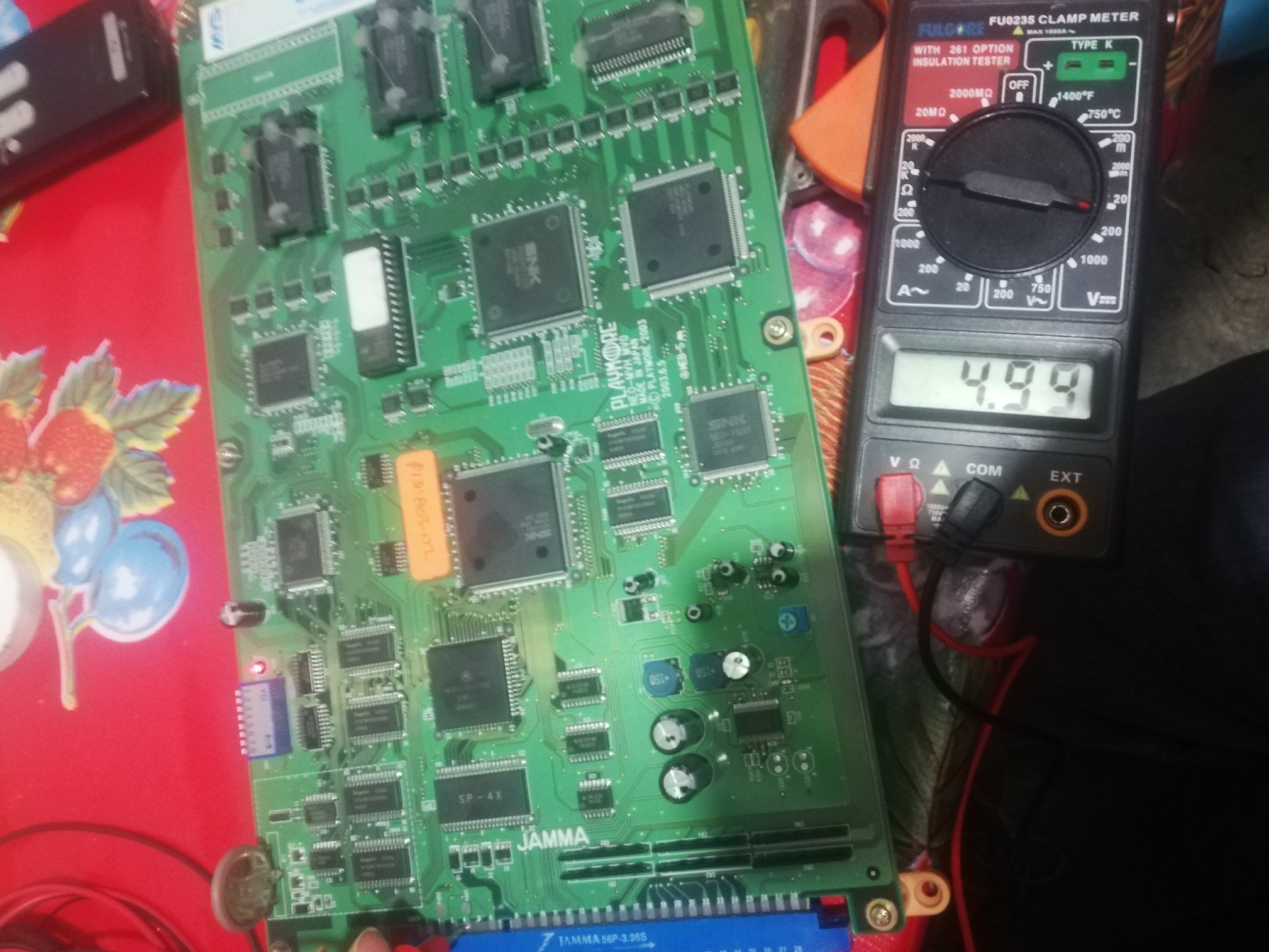 1) Revisar que el voltaje este en 5 volts, no más alto ni más bajo en el conector JAMMA de tu PCB