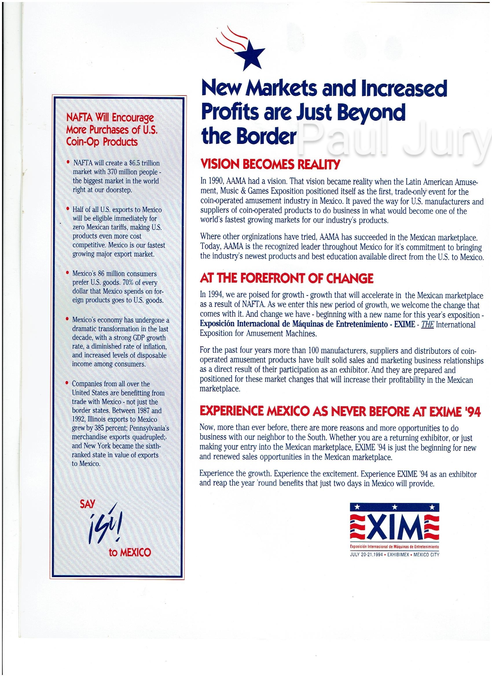 El Exime era la exhibición de video juegos, pinball redemption y entretenimiento electro mecánico, que se hacía en México desde 1990, anualmente. Y se presentaban los distribuidores, importadores y gente de las marcas de Estados Unidos y Japón.