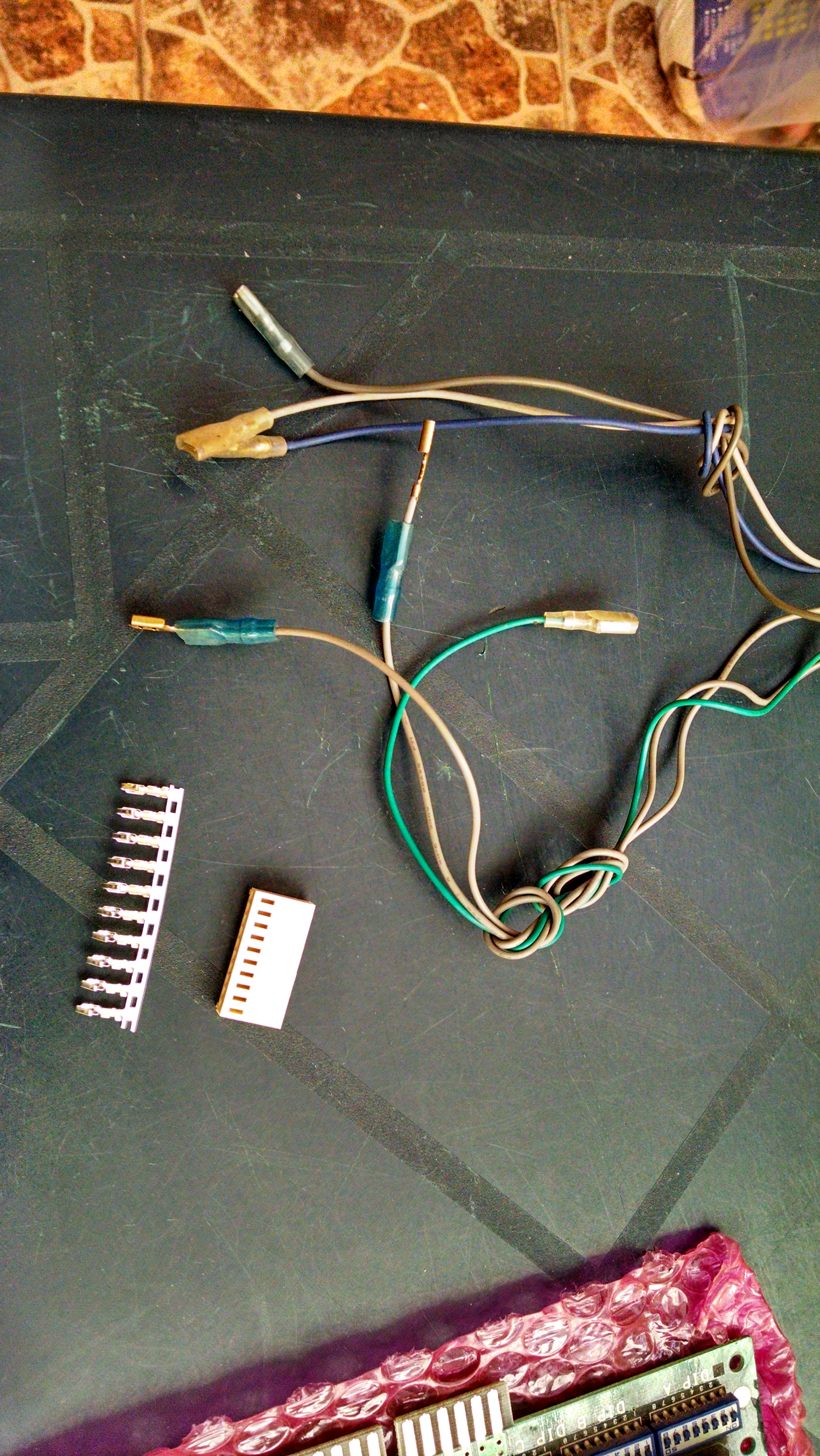 Listo! Ya tenemos nuestro conector de patadas, ahora solo es cuestión de conectarlo al cps1 y en sus otros extremos conectar los cables cada uno a un micro, patada baja, media y fuerte del jugador uno según nuestro esquema y lo mismo con el jugador dor. Para las tierras, recordemos que tenemo dos cables de tierra, lo que podemos hacer es que a cada cable de tierra que salga de nuestro conector, lo añadiremos en su parte distal dos cables más para que así, de una tierra obtengamos 3 mismas que conectaremos a cada uno de los botones destinados para las patadas.