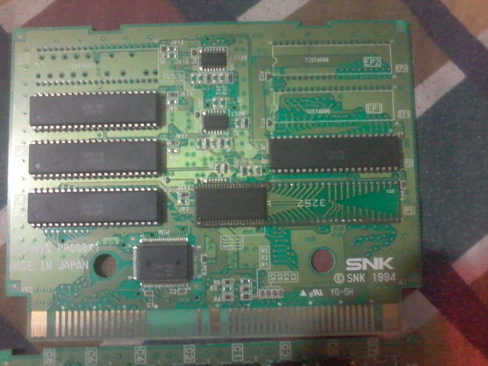 ese kof que tienes es "kof 97 1/2" muy famoso aca en mexico por activar a "los locos" como se les conocia aca, si le quitas esa placa tu juego sin ella NO FUNCIONARA, lo que tienes que hacer es grabar un rom con la informacion del rom del kof 97, la p1 (para que se haga otra ves "normal" valga la redundancia) asi ya tendras la version oficial de snk, salu2!!!