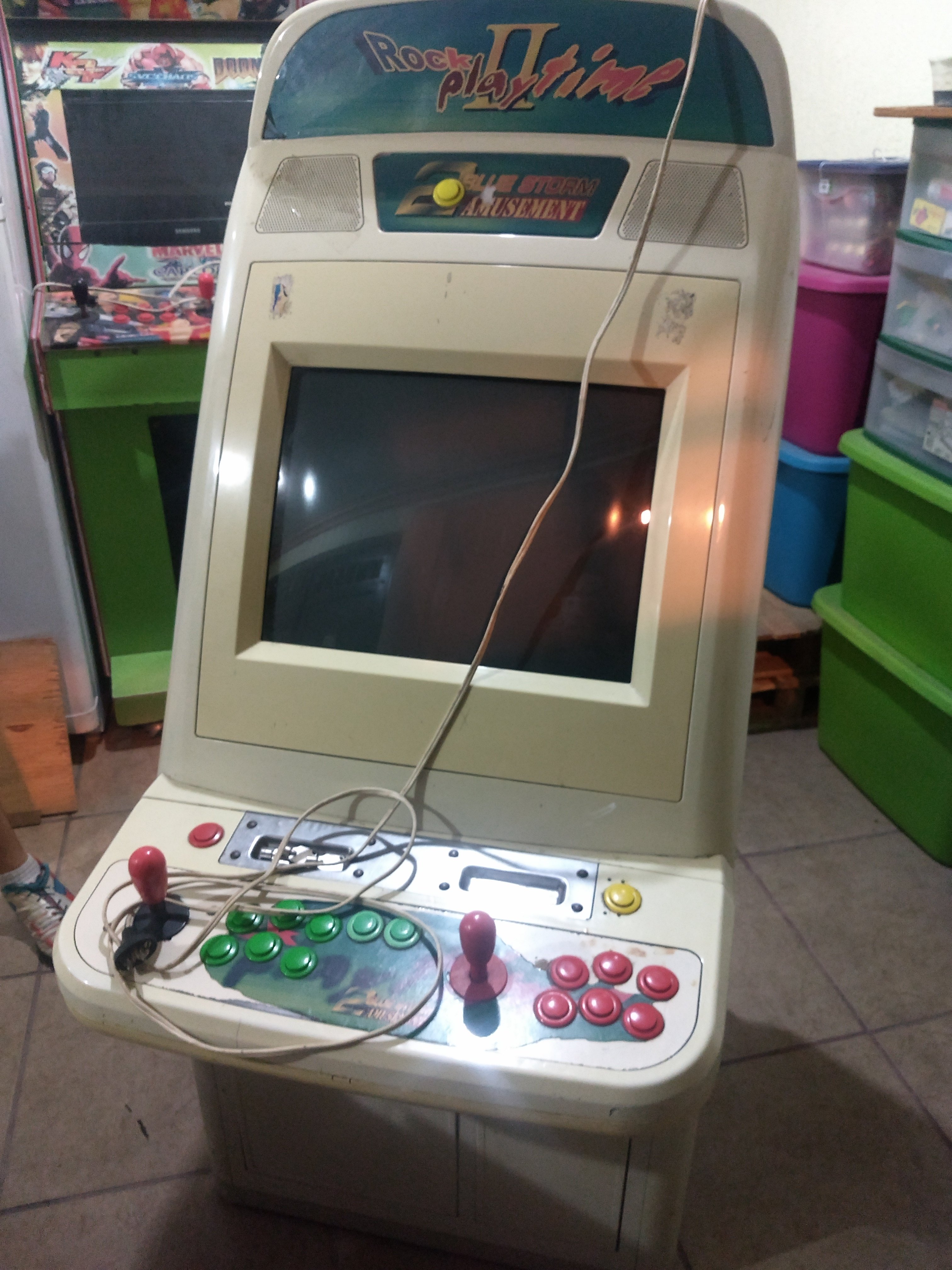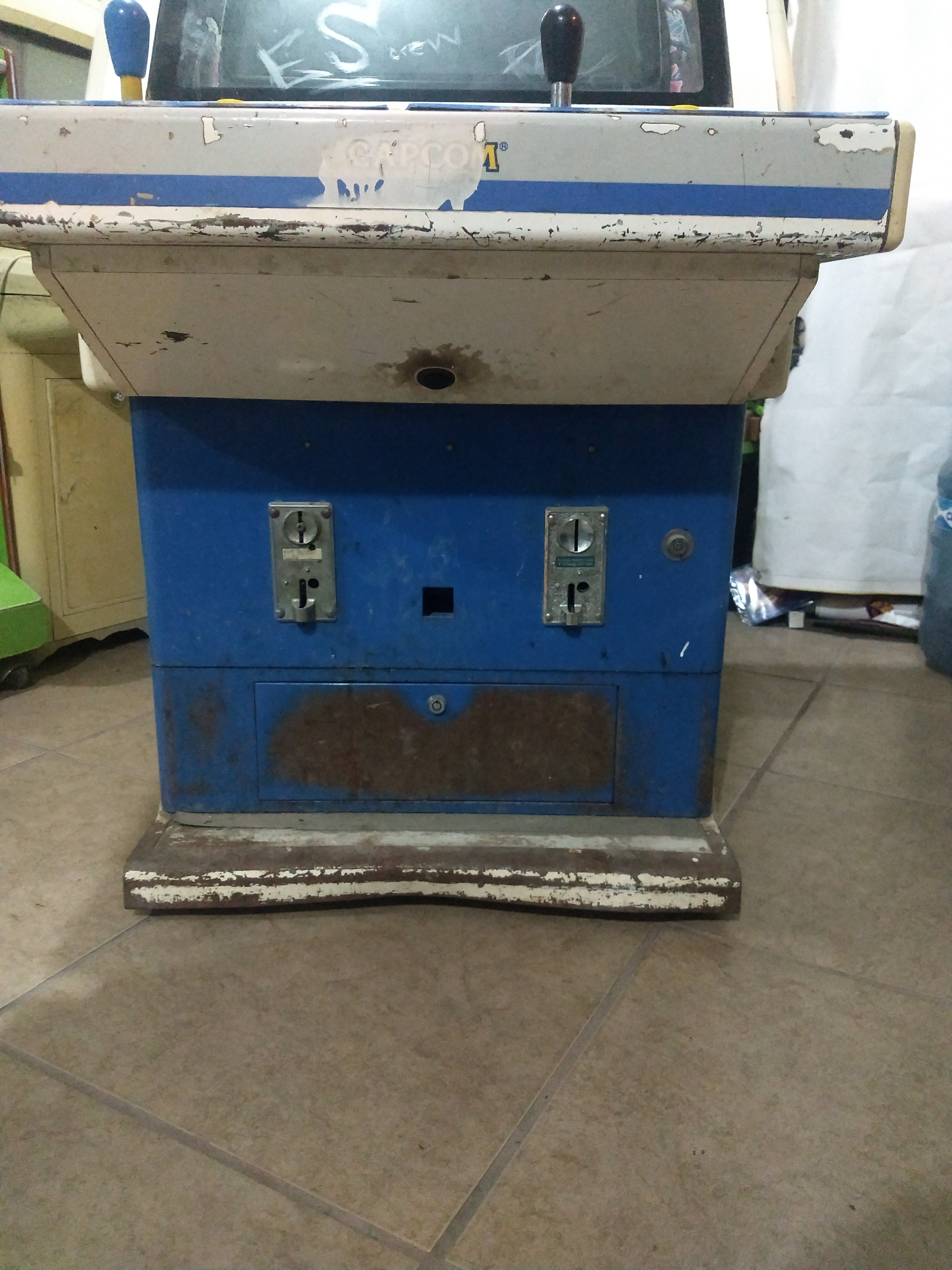 tuve la gran suerte de toparme en una venta de garage con 2 arcade japoneses, un Q-GrandAm 25 Y una Rock Playtime 2, ninguna de las 2 funciona y ambas están modificadas con un gediondo xbox, lo primero que quiero hacer es restaurar los muebles no se mucho sobre restauración y me gustaría que alguien con experiencia me ayudará (si hay alguien de León Gto. mucho mejor), como pueden ver las trataron un poco mal ya que tienen agujeros adicionales y creo que la capcom ya no tiene el monitor original aunque pude abrirla si tiene su placa para el control del monitor, alguien me puede ayudar en darme algunos tips? así como en donde puedo conseguir el arte para volverlas a la vida