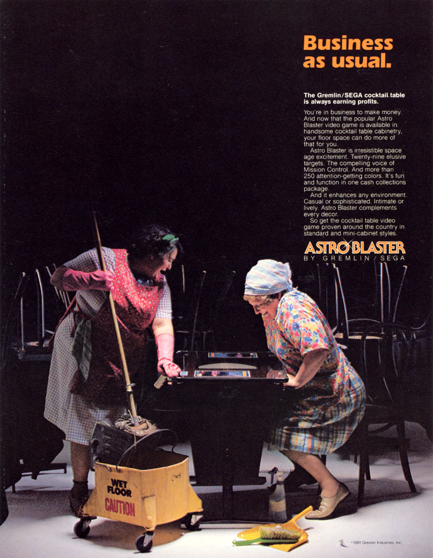 Actualmente es difícil de ver porque los coleccionistas lo han acaparado totalmente, y cuando se deja ver completo y funcionando su precio es alto (eventualmente aparecen algunas placas o partes, pero es difícil ver el set completo jalando). Hasta donde sé no fue porteado a consola alguna, ya que hay varios juegos con el mismo nombre que no tienen nada que ver, y Astro Blaster de ZX Spectrum tiene una mecánica parecida pero dista mucho de ser un port por muchas diferencias con la versión de arcade.