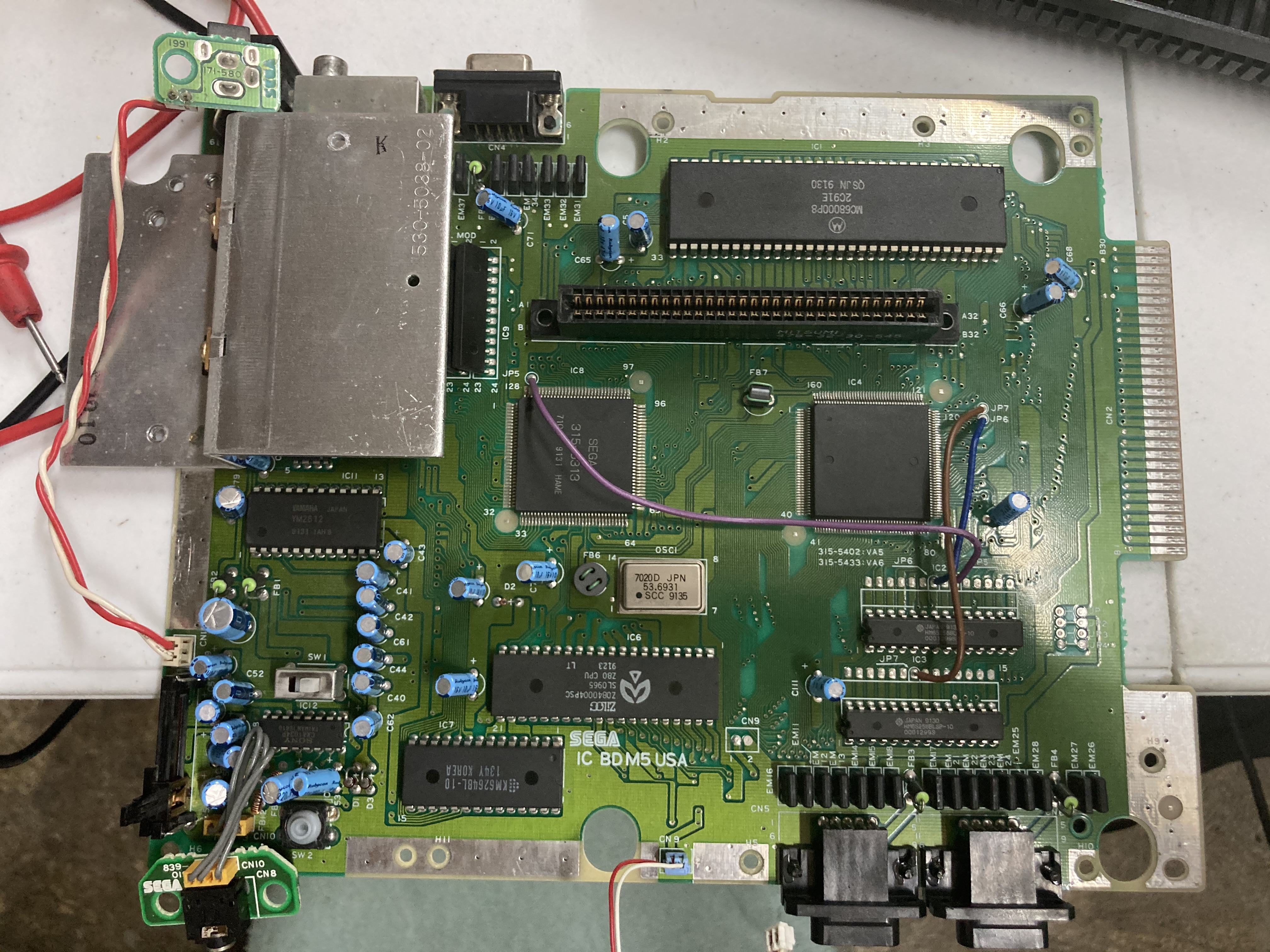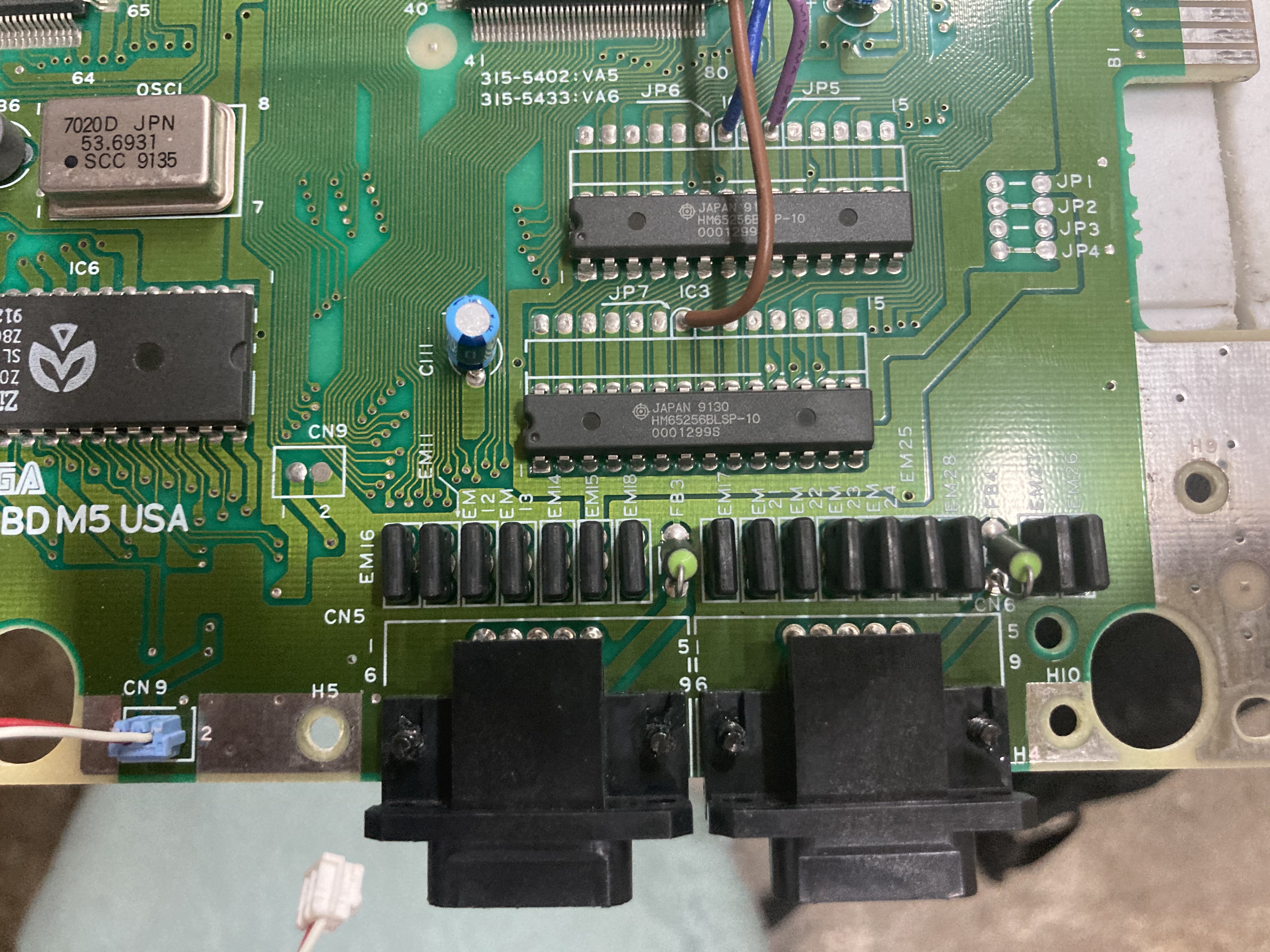 En cuanto a la reparación del puerto 1 de un SEGA Genesis modelo 1, ahí si no tuve suerte, no pude dar con el origen del fallo que presenta el puerto 1, cuando enciendo el Genesis, al pad del player 1 no le funciona el D-pad, es decir no se acciona arriba, abajo, derecha, izquierda, y si presiono botón X se activa izquierda, si presiono el botón Y, no se activa nada, y si presiono botón Z, se activa arriba es decir salto, los botones A,B,C funcionan a la perfección, el mando funciona perfectamente en otros Genesis que tengo, limpie con cepillo y alcohol isopropílico el puerto 1, también volví a soldar el puerto 1 a la pcb del Genesis pensando que habría una soldadura fracturada y no hiciera contacto, pero no era el caso el puerto 1 sigue comportándose igual, cabe señalar que el puerto 2 funciona perfectamente, Artemio que componentes intervienen en el puerto 1?, cabe señalar que investigue sobre esta falla y al parecer no soy el único que le ha pasado, pero en ninguno de los casos le encontraron solución, terminaron comprando otro Genesis, en mi caso no me voy a dar por vencido, ya que es mi primer Genesis.