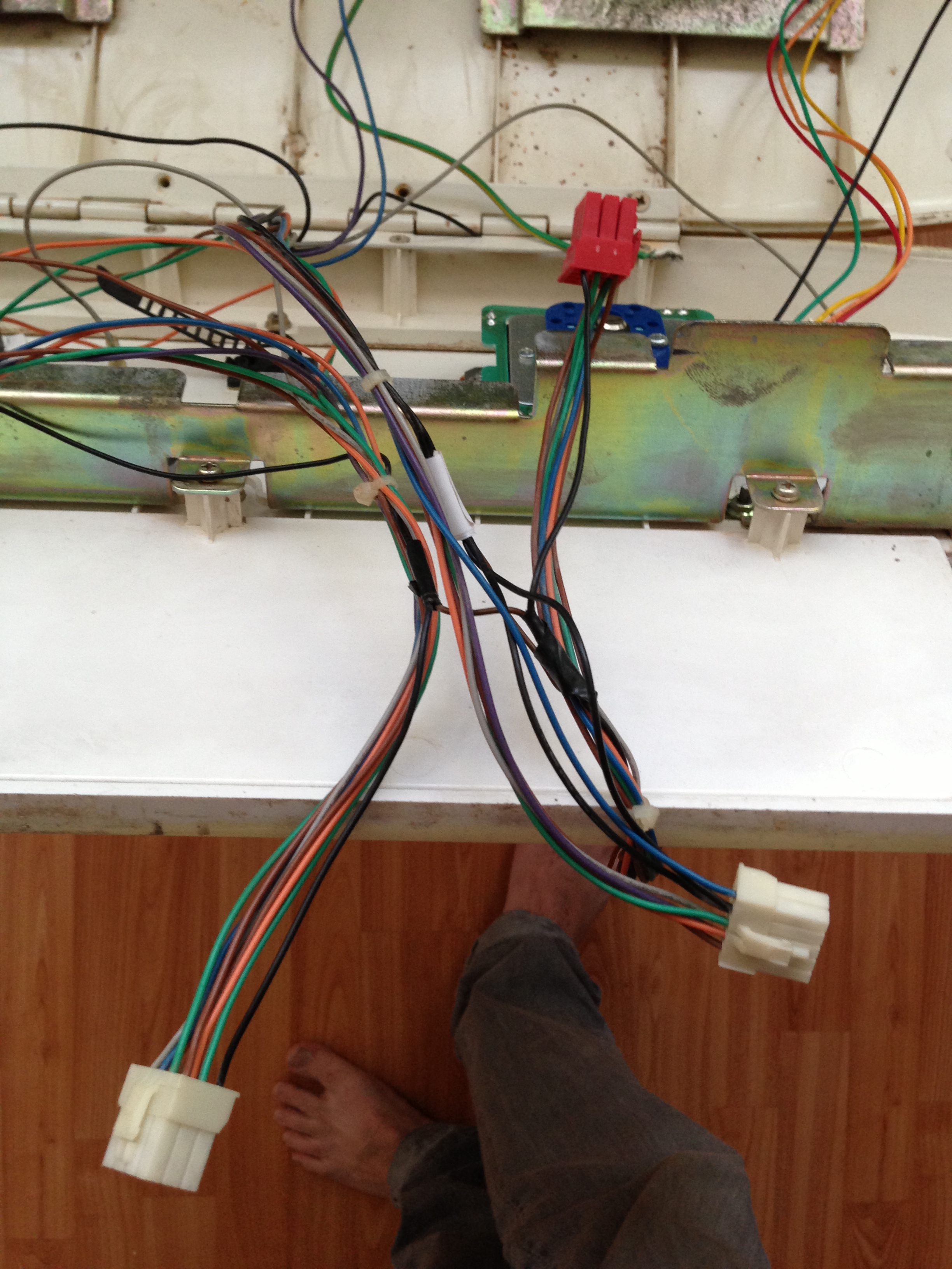 El arreglo original me atrevo a decir que es bastante ingenioso, me refiero a como venía el cable de corriente y se distribuía para todos los botones. Quiero decir que el 1er arnés tiene, originalmente, "un solo cable" para los tres primeros botones, start y la palanca.