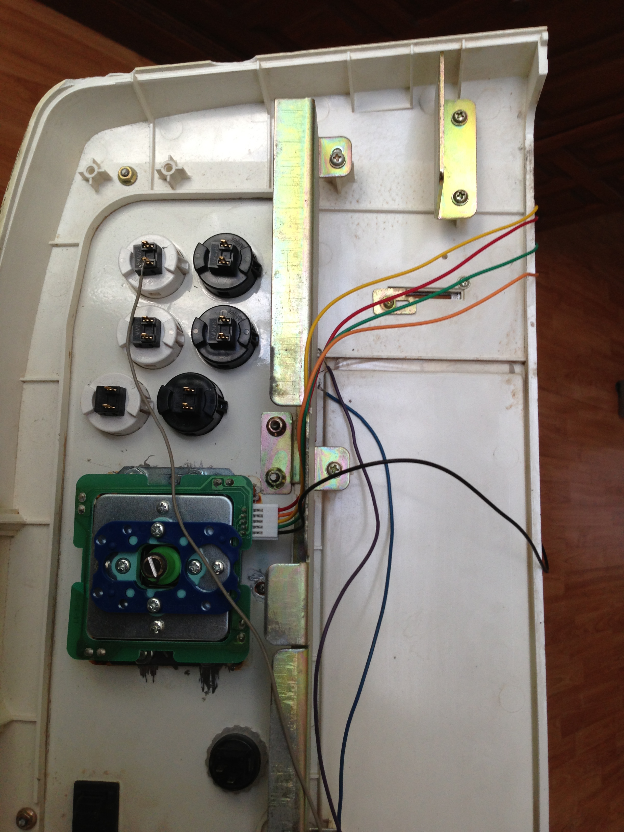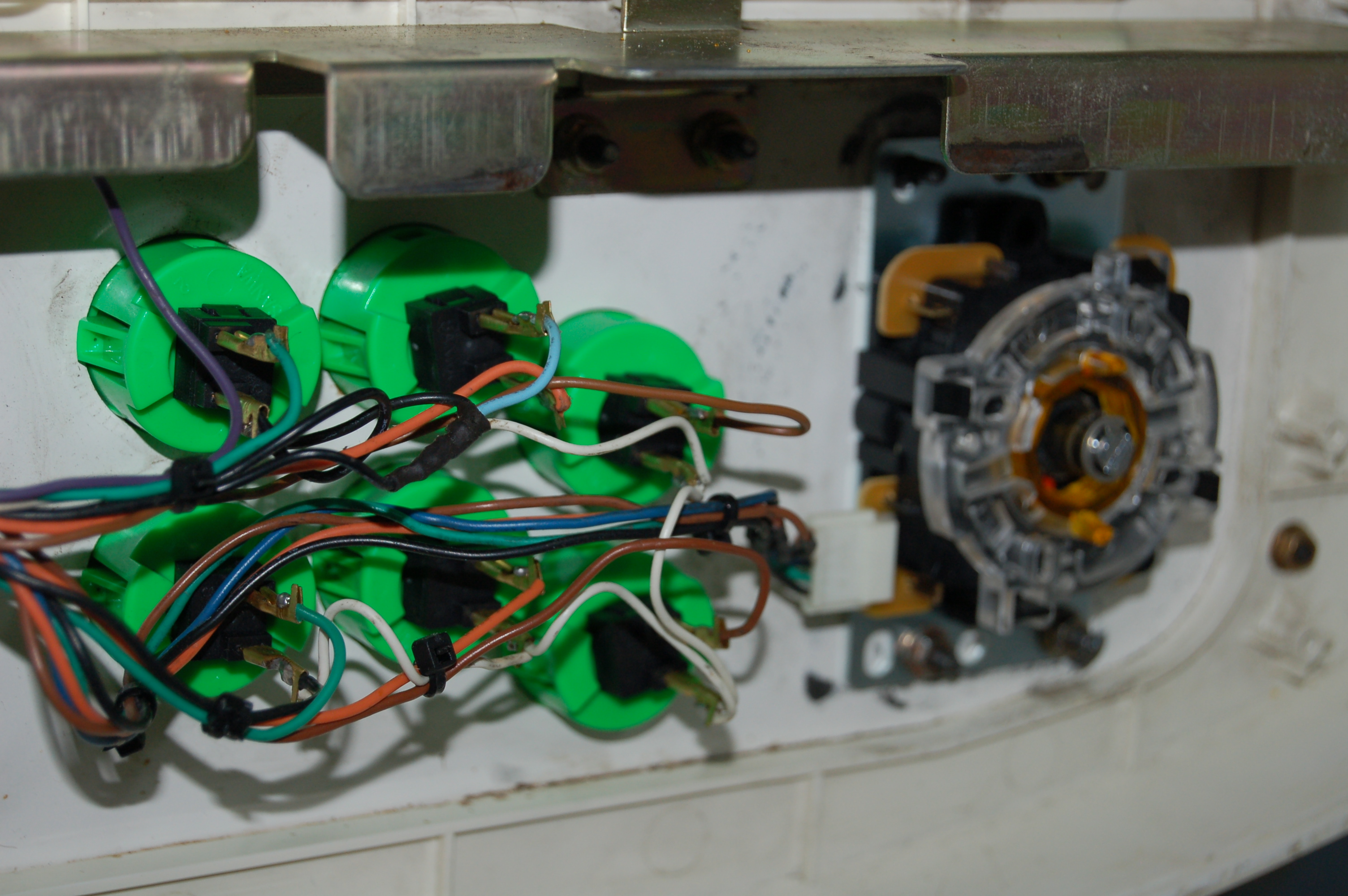 El arreglo original me atrevo a decir que es bastante ingenioso, me refiero a como venía el cable de corriente y se distribuía para todos los botones. Quiero decir que el 1er arnés tiene, originalmente, "un solo cable" para los tres primeros botones, start y la palanca.