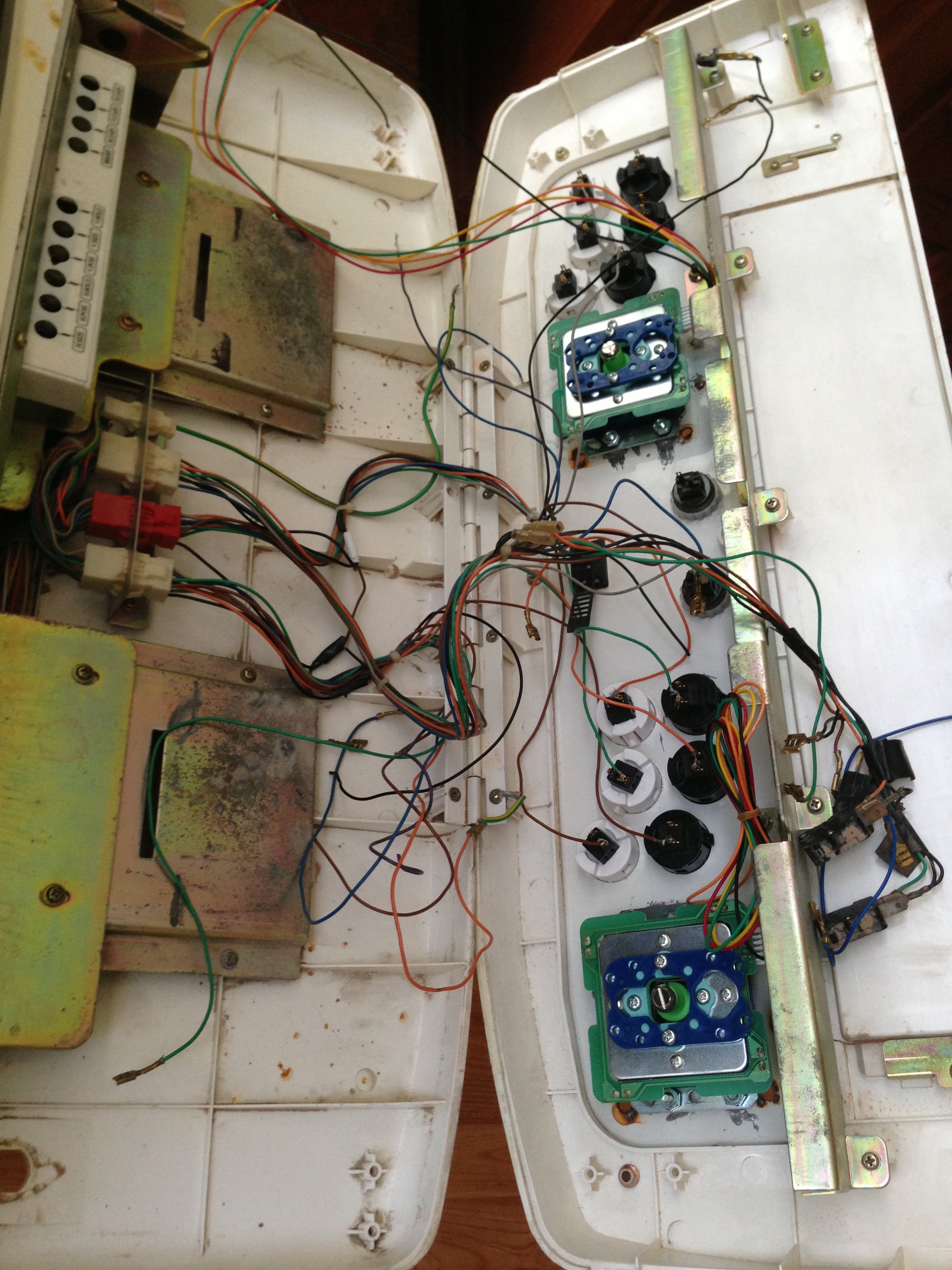Les cuento que al fin migré toda la maquina de un gabinete roto y amarillento a uno blanco y.... menos golpeado. De igual manera le cambié las palancas por unas Seimitsu y los botones por unos Sanwa y quedó bastante bien con una gama de colores que me gusta, en la última recta del camino ahora me encuentro de nuevo en el mismo embrollo que tenía el día que la compré, los botones y palancas estaban conectados de una manera extraña y sigo sin descifrar al cien por ciento que es lo que tengo que estar haciendo.