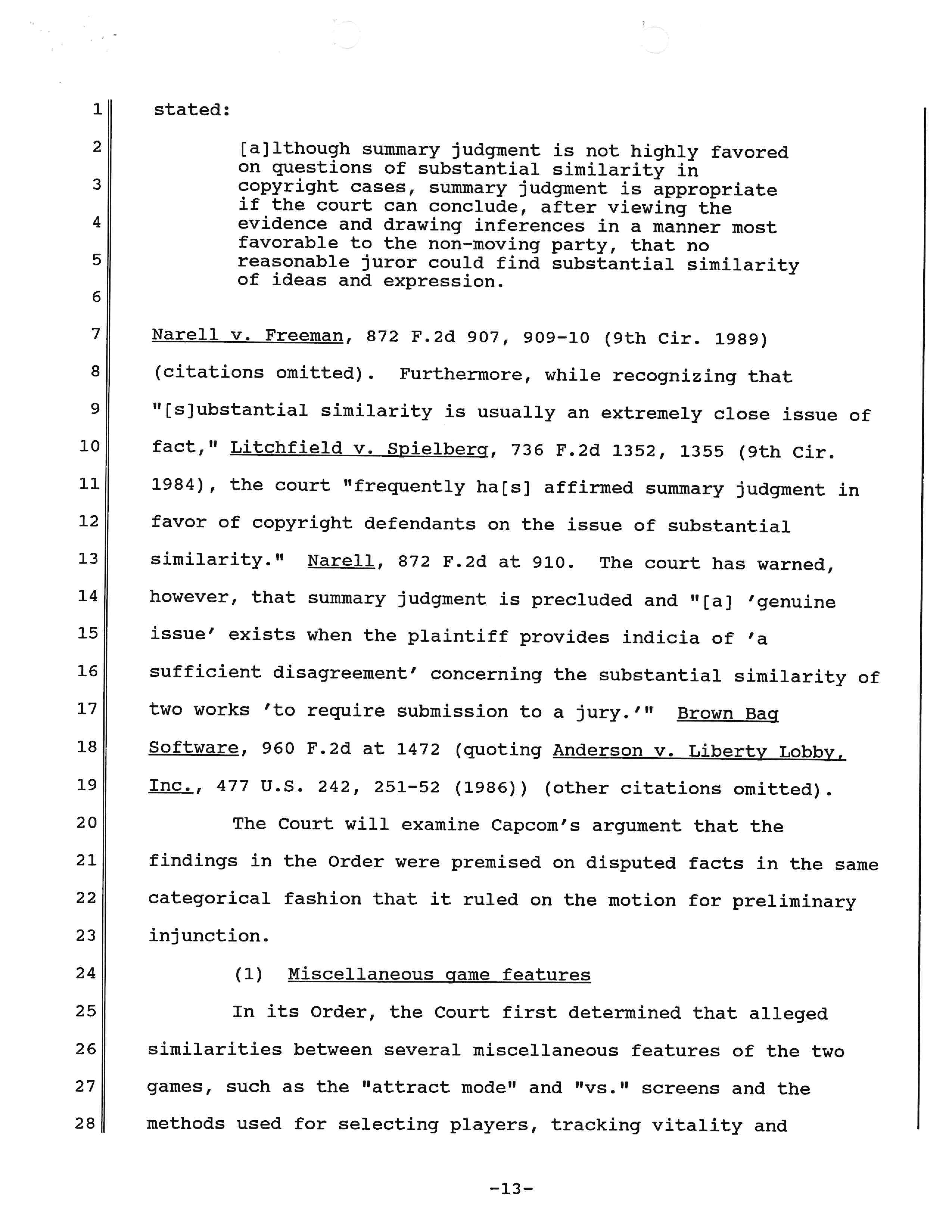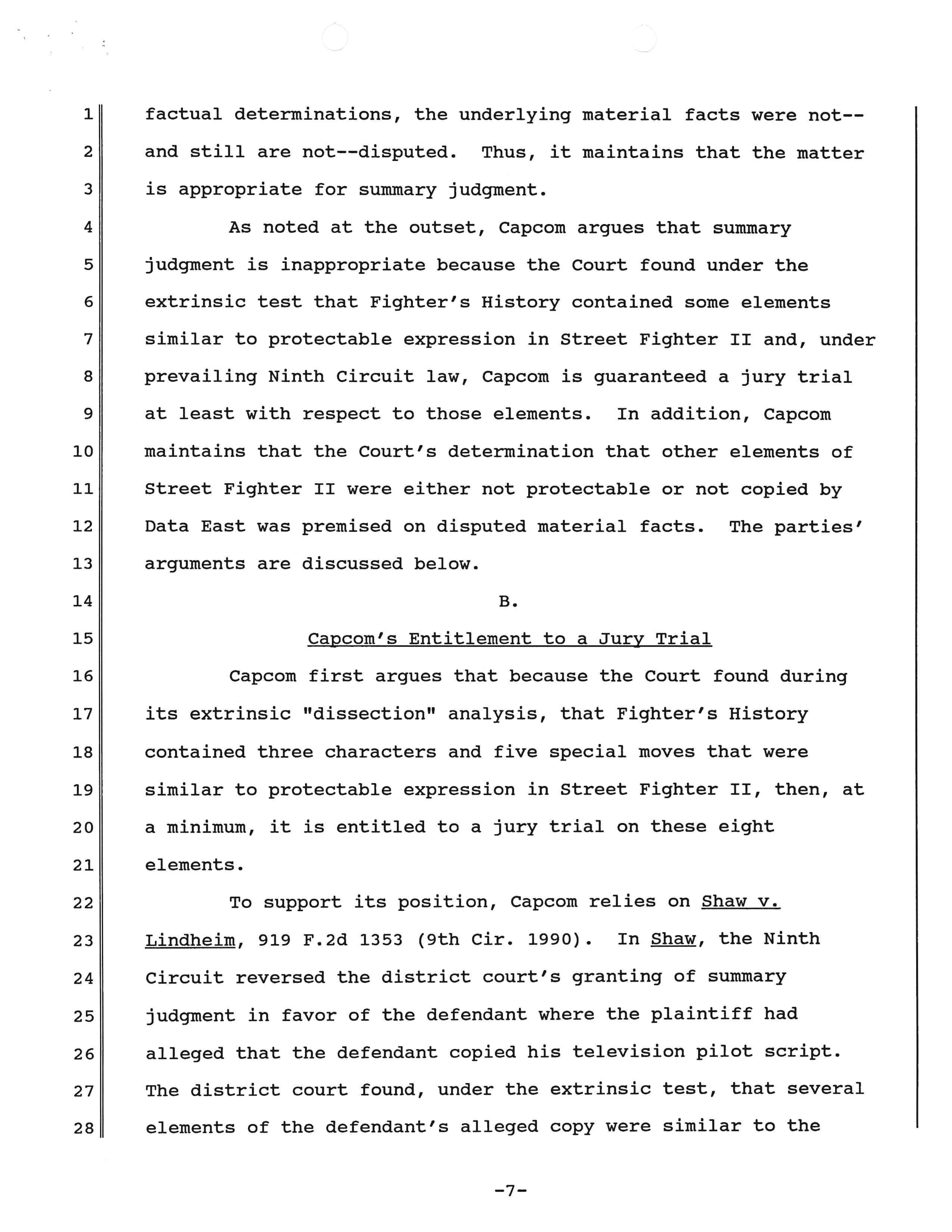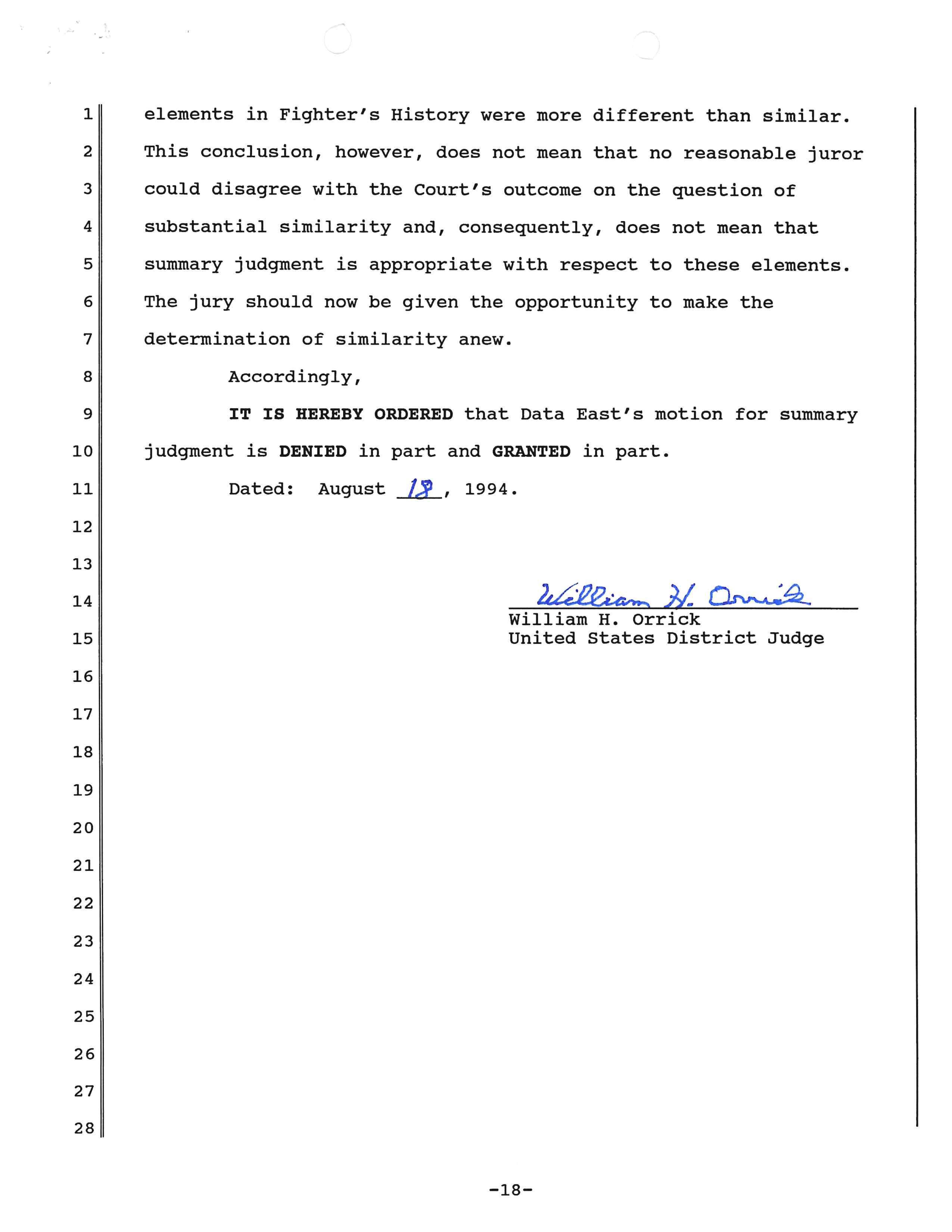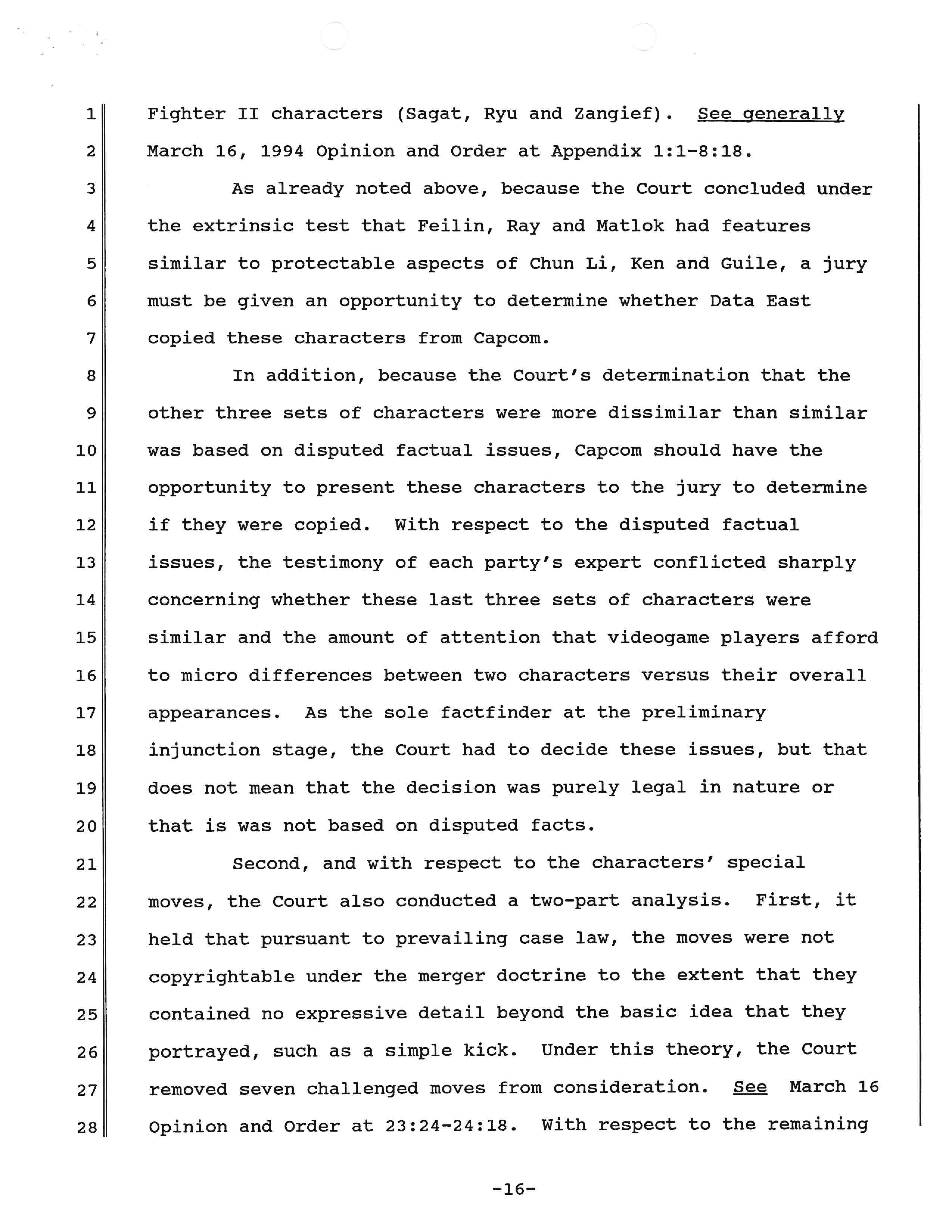 En 1993 Capcom, demandaba a Data East por exactamente algo no tan claro, que era parte de los conceptos de personajes, poderes, jugabilidad, que el juego de Data East usaba en Fighter's history basados en el Street Fighter 2. en el video muestran la comparativa y desestimación de tales argumentos imputados a Data East, este es uno de los dos videos que presentaron ante el juez. sin duda muy sonado en el medio en esos años, lo curioso de esta demanda, es que fue hecha en estados unidos y no en Japón siendo dos compañías originarias de Japón, el caso se presenta en california, donde Capcom tenia una de sus filiales. aun que se rumorea que solo se hizo por capricho de los ejecutivos de Capcom Estados Unidos, por ver si ganaban dinero de ello mas que por cerrarles el mercado a Data East. les dejo un link del video en youtube y las fotos del veredicto del juicio.