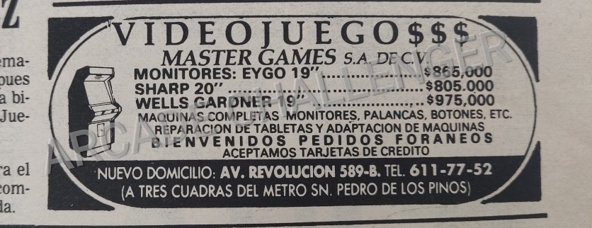 Para todos los amantes del monitor CRT y las hernias por cargarlos aquí está un anuncio del periódico de la prensa donde ponían los precios de estos monitores de 19 pulgadas y 20 pulgadas en particular. las marcas que eran las más famosas en México en 1989, por la tienda de Master Games, el precio era un poco arriba de lo que podías comprarlo, pero ya estando en la tienda solo mencionabas que en katarys o en vídeo juegos consulado te lo daban mas barato y todos te mejoraban o igualaban el precio, si es normal que el Eygo era mas caro en ese entonces ya que el distribuidor principal si daba caro, ya que en estos años esta marca bajo mucho su calidad antes al principio era buena solamente pero no era top.