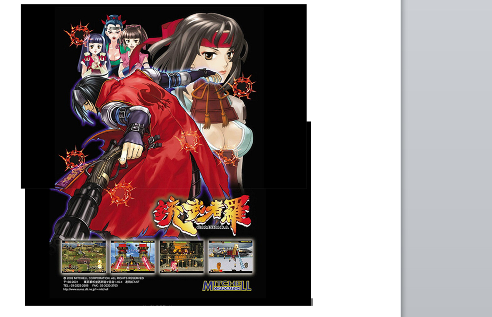 Para los fans de los shooters tipo Cabal, les presento un juegazo para 2 jugadores simultaneos de 2002/2003 desarrollado por Capcom y publicado por Mitchell: Gamshara. Transcurre el año 1500 en Gamshara y varios señores feudales quieren extender sus dominios así que la guerra comienza provocando un gran baño de sangre; uno de los señores feudales envía sus dos mejores guerreros (hombre y mujer) a poner fin a la guerra y detener la matanza. Los gráficos son muy buenos igual que la música y los efectos sonoros; podemos ocupar 3 botones, con uno disparamos, con otro podemos saltar para evitar los disparos y con otro accionamos las bombas.