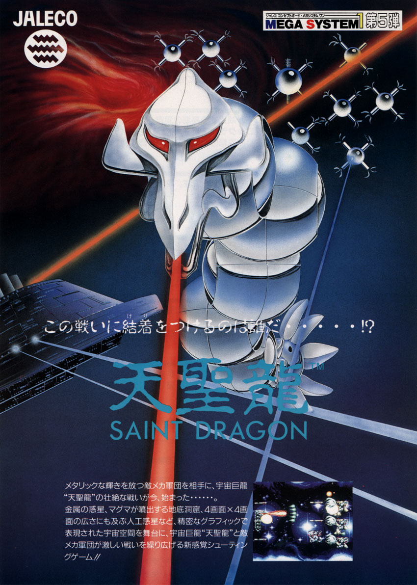 Otro excelente shooter desarrollado por NMK y publicado por Jaleco en 1989; se trata de Saint Dragon (St. Dragon); este juego no es obscuro pero desgraciadamente no es muy popular debido ser algo viejito y por ende opacado por las joyitas que todos conocemos (Ibara, Ketsui, Battle Garega, Esp.ra de, Radian Silvergun, Air Gallet, y tantos otros juegazos del género), sin embargo Saint Dragon no les pide nada, es un excelente shooter con buenas gráficas, excelente música y un alto grado de dificultad sin llegar a ser maniac shmup (aunque a veces lo parece). Se los recomiendo ampliamente.