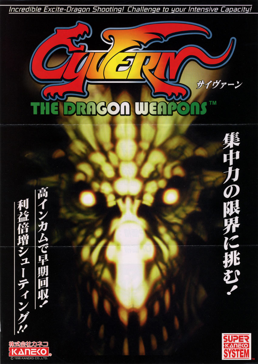 Un maniac shmup de altísima calidad que seguro algunos miembros del foro conocen, pero desgraciadamente muchos otros no, se trata de Cyvern (o Cyvern: The Dragon Weapons), desarrollado en 1998 por la compañía Kaneko; es un shooter maravilloso, con gráficos increibles y banda sonora excelente, aunque es algo corto. Lo recomiendo ampliamente por su calidad (aunque yo no soy afecto a los bullethells). Les dejo el flyer y un link de youtube para que lo chequen. Hasta donde sé, el juego no ha sido porteado a consola alguna ni a PC.
