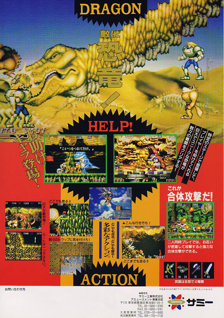 Un excelente run n' gun/platformer para dos jugadores de 1993 de Sammy; los gráficos son excelentes, la movilidad magnífica, los efectos de sonido destacados, y además es un juego muy divertido; podemos seleccionar entre dos personajes y hay diferentes armas y power ups para recolectar. En la Tierra en el año 2993, Roger es un policía del tiempo y está persiguiendo a Gustaf, un peligroso criminal; en la persecusión ambos retroceden 65 millones de años y Roger tiene que detener a Gustaf en la era de los dinosaurios; cuando la nave de Roger desciende, Wolf, un lobo nativo lo ayuda en su lucha para capturar al peligroso criminal.