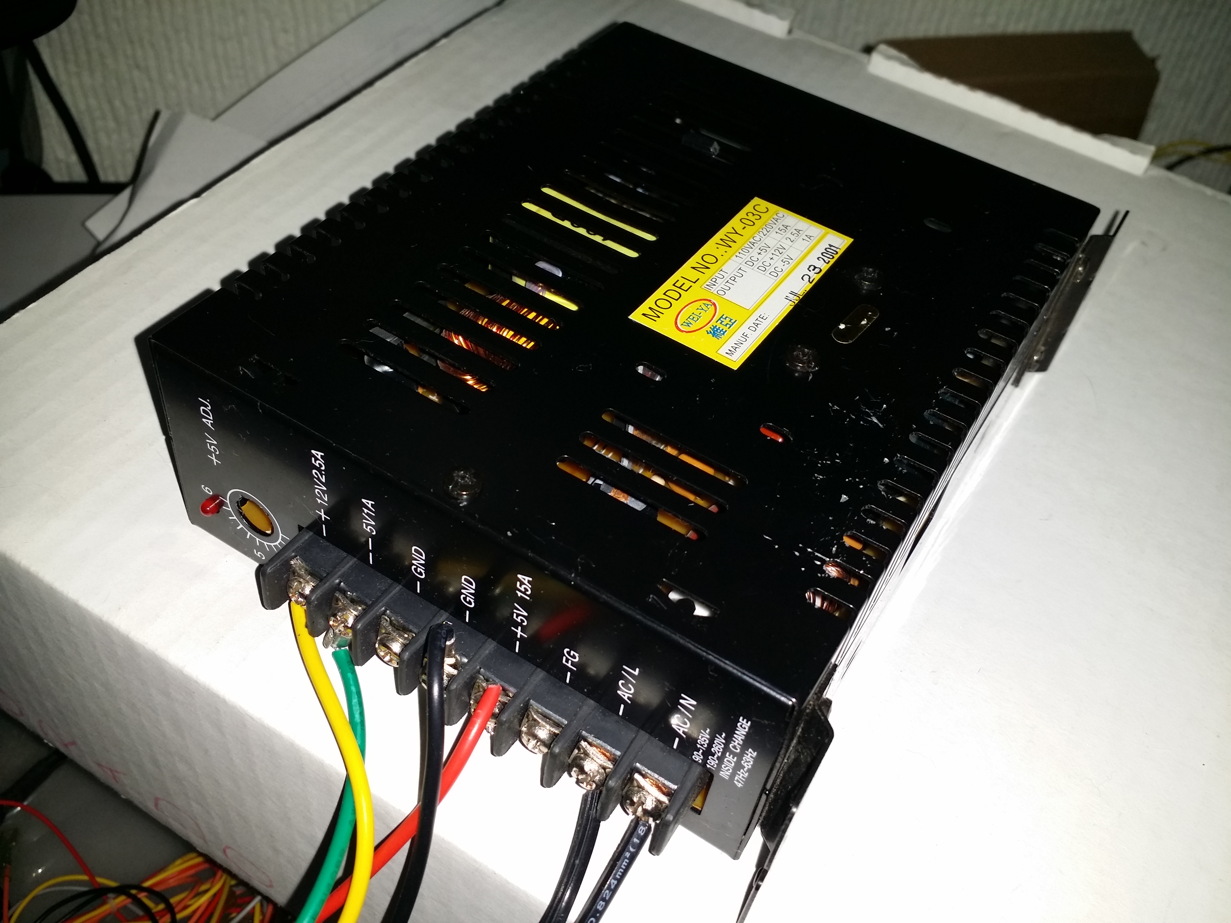 Tenemos que sustituir todas esas partes, para empezar una fuente de poder. Aqui podemos usar una fuente wei-ya de uso común en México, así tengo mis dos superguns. Hay en mercado libre usualmente, o con proveedores arcade. No es una parte cara y funciona a la perfección, debe estar entre 150 y 400 pesos, si es usada es muy barata. La otra opción en este rubro es una fuente de poder de PC. Es una buena opción, pero prefiero la arcade porque se puede regular el voltaje, ya que hay pcbs que necesitan mas o menos poder, y siempre es bueno medir cuanto se esta dando para evitar quemar las placas.