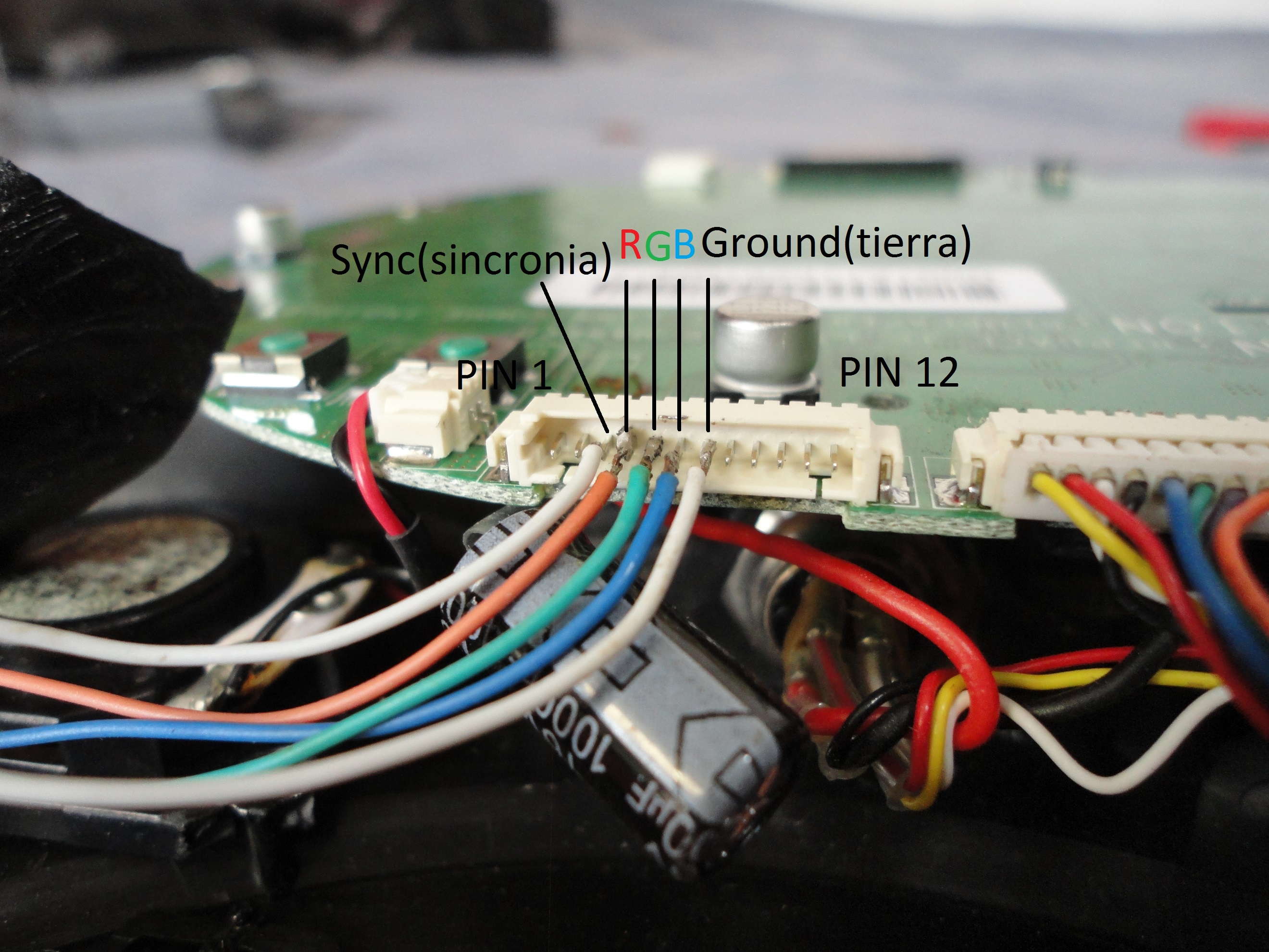 Para la modificación se requieren 5 pines (pin 3,4,5,6 y 7) de los 12 que tiene el socket