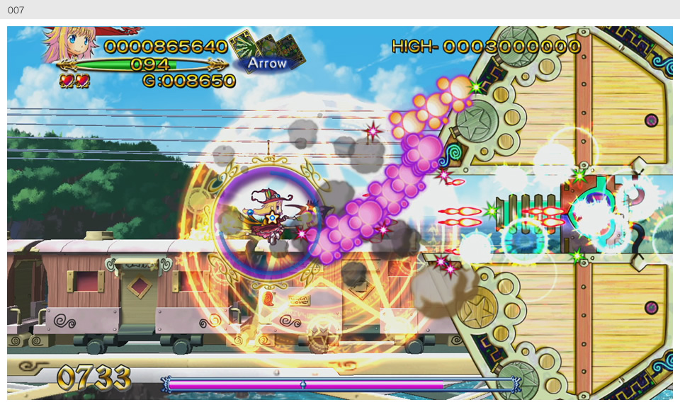 Ahora les propongo un oscuro cute shmup desarrollado por Siesta Studio y publicado por Taito para su Type X en 2009, únicamente en Japón. Es la versión mejorada del primer juego de la serie que salió como un doujin game para PC, llamado Trouble Witches Episode 1: Daughters of Amalgam en 2007.