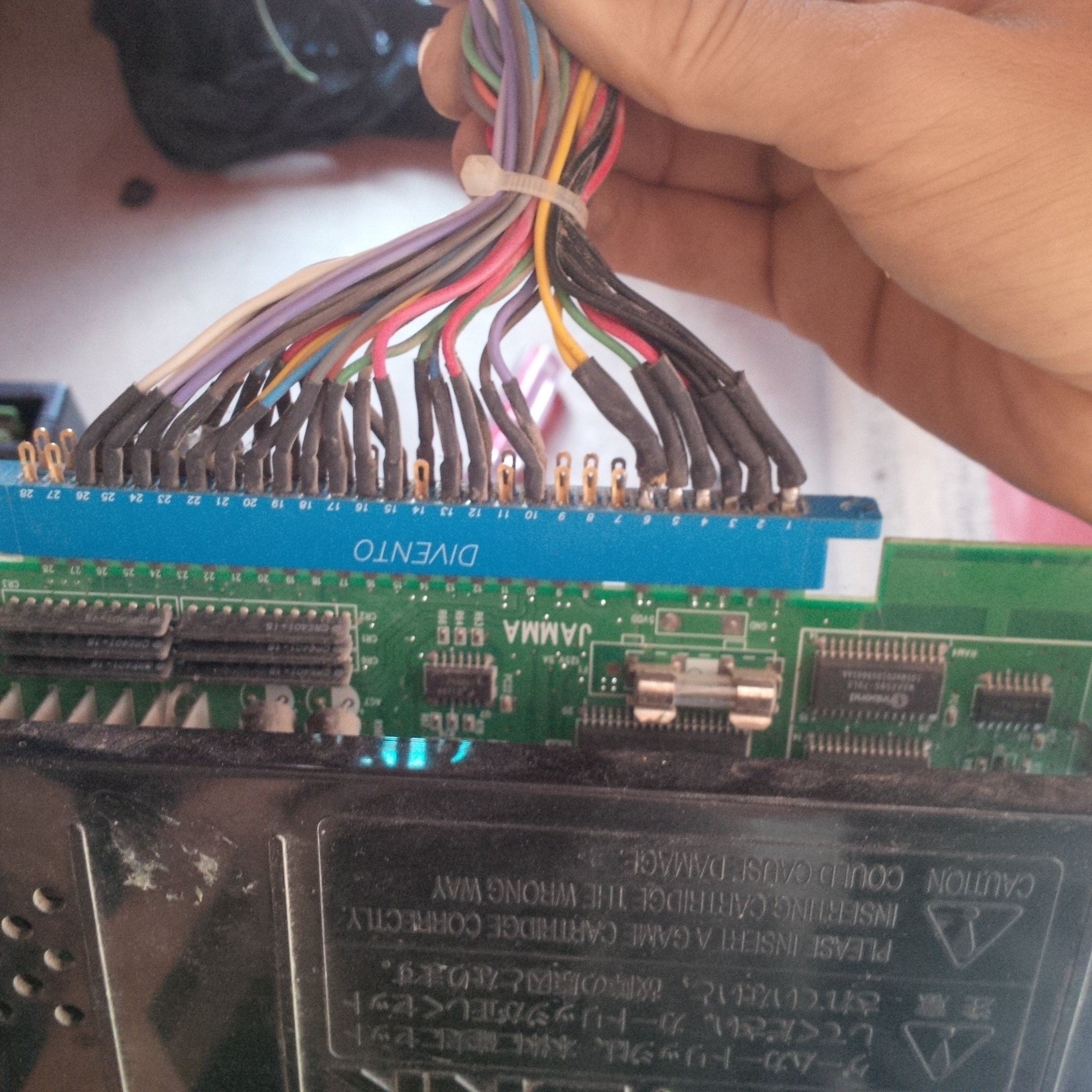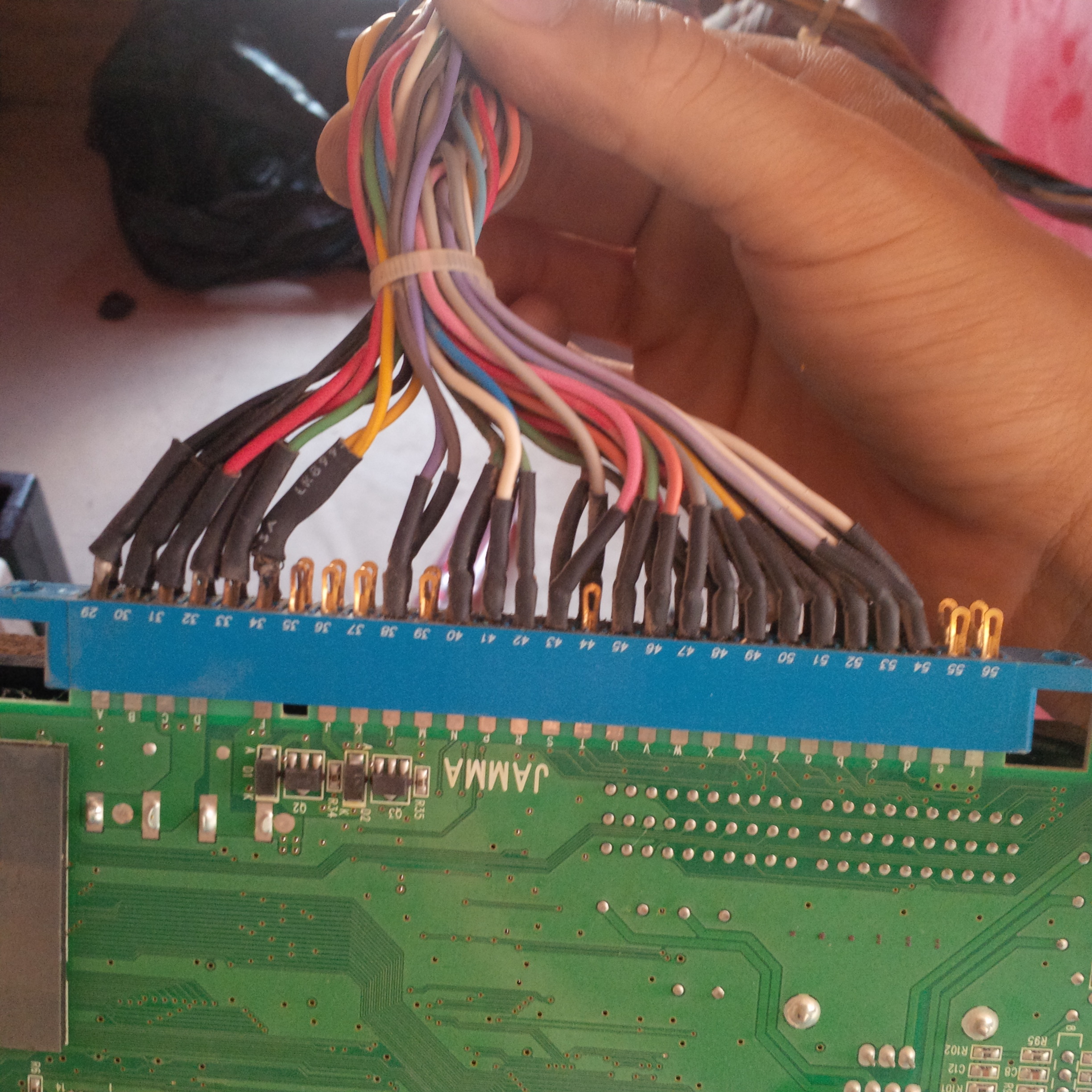 Dejo adjuntadas las fotos de la máquina, de las conexiones para los botones y del conector Jamma.