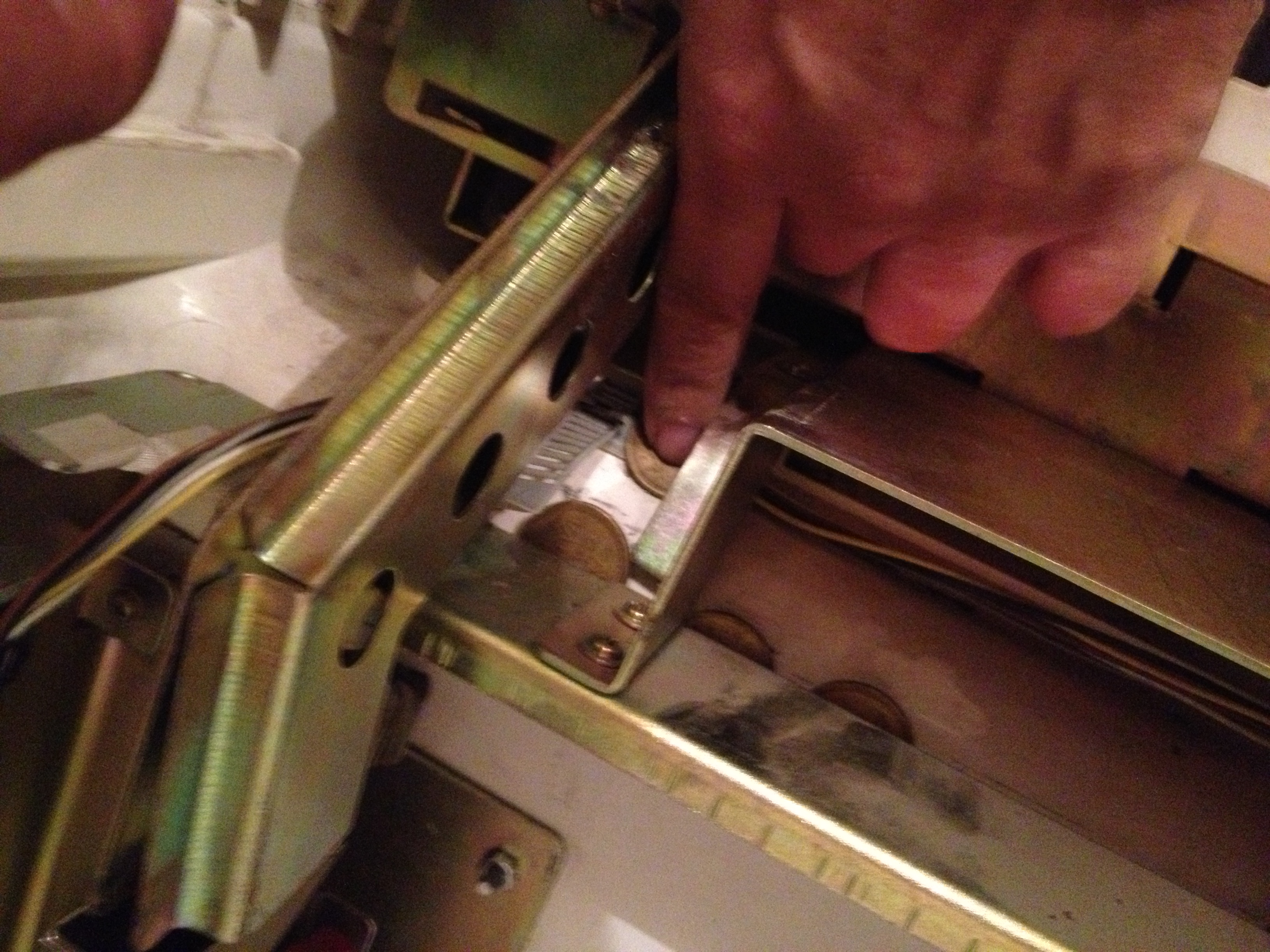 Antes que nada, como tal vez ya hayan visto, la máquina pesa como 110 kg. lo cual hace un poco complicada la labor de desarmar/armar. Para quitar la sección del tablero se deben quitar unos 14 tornillos y acostar el gabinete para poder sacar esta pieza. Los tornillos se encuentran en los laterales de la pieza del tablero (6 Torx de seguridad), la parte de abajo de la máquina (4 de cruz) y en la parte interna del tablero, están sujentando unas piezas grandes metálicas (4 de cruz). Acostando la máquina se puede sacar esta pieza sin problema.