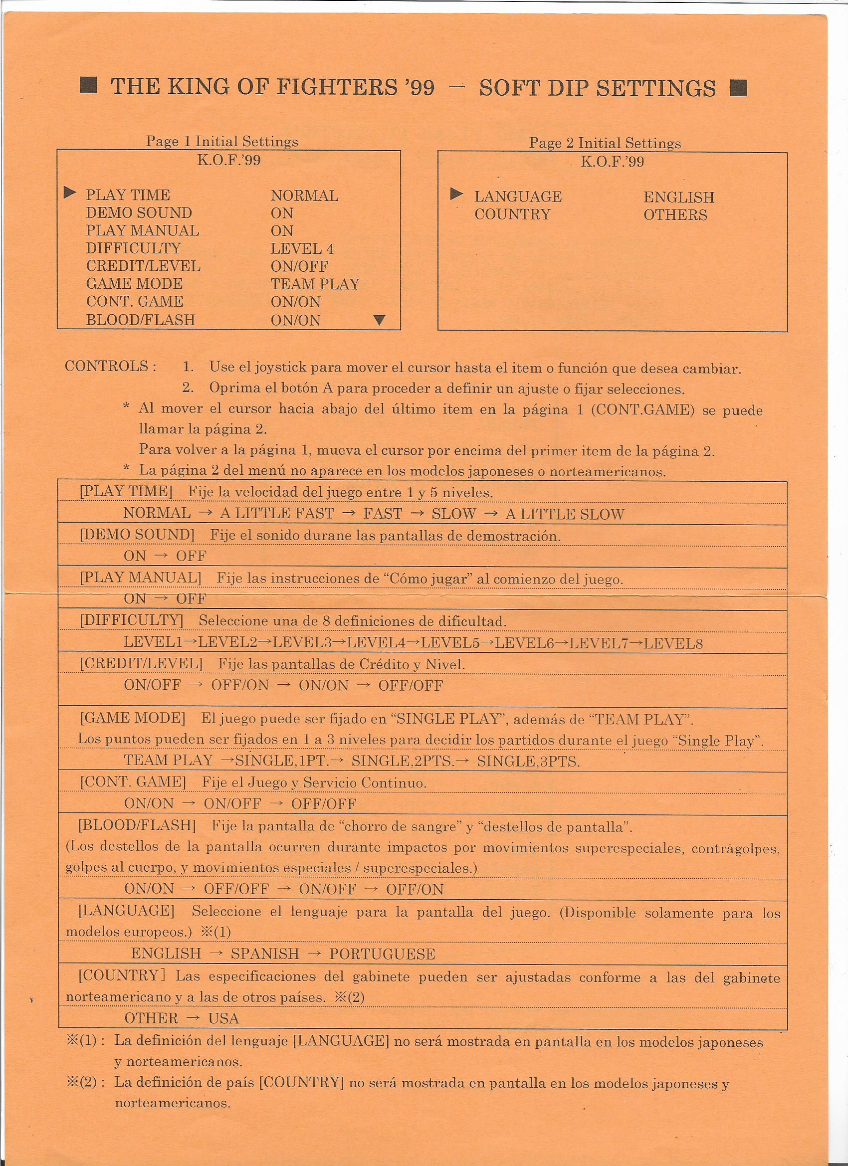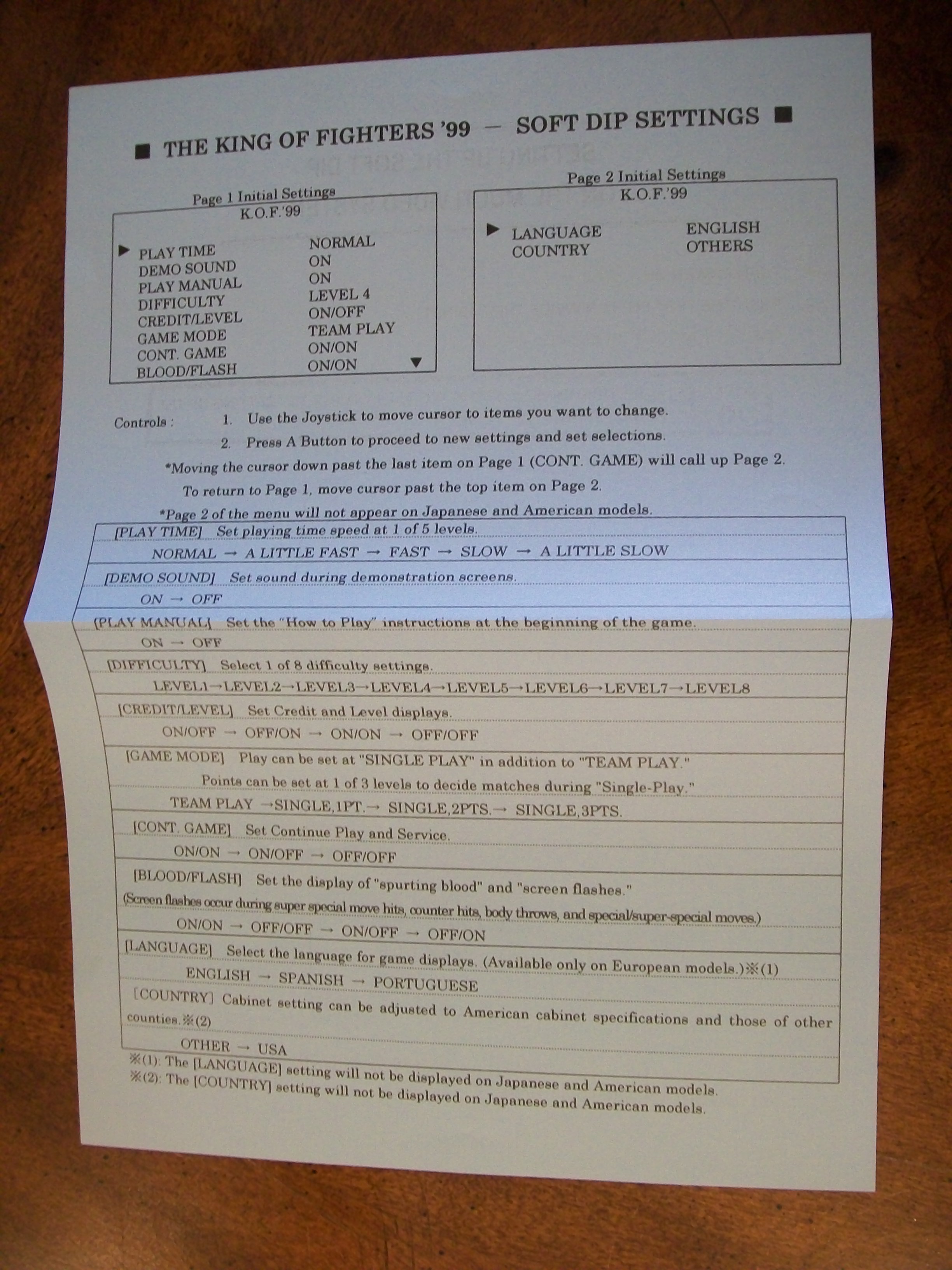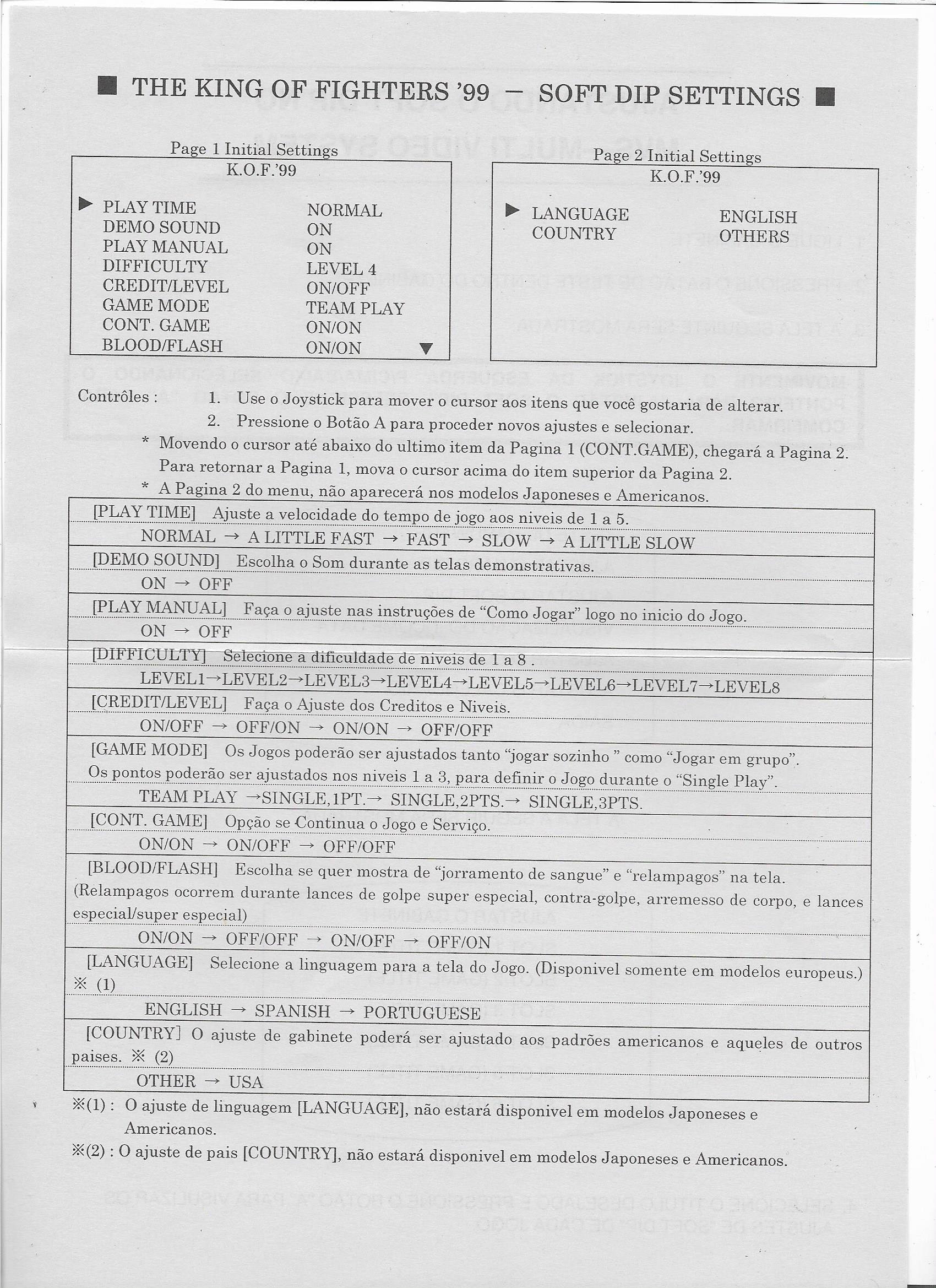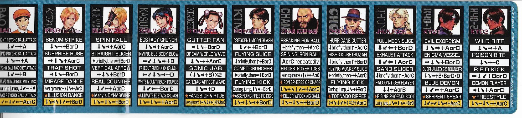 Hola otra vez, aqui les dejo unas fotos de algunas de las cosas que venian incluidas en el MVS de KOF 99, listas de movimientos y miniposters en español, Portugues e Ingles.