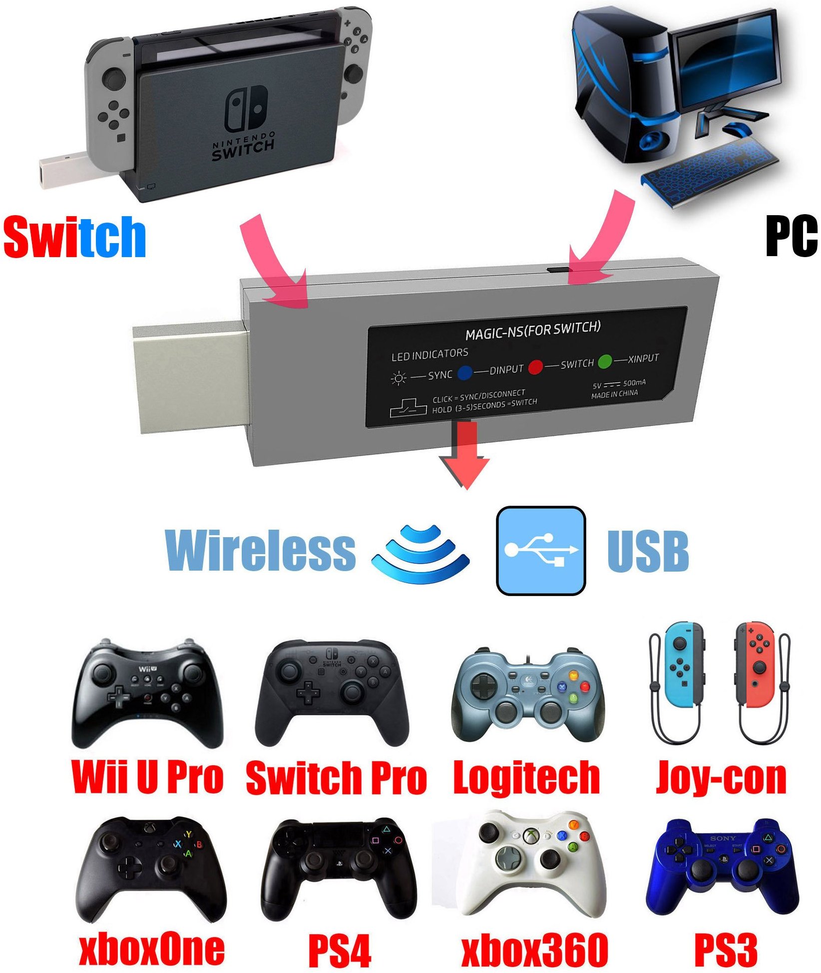 yo tambien recomiendo el Mayflash a mi me funciono en el Swith sin accesorios extra solamente lo tuve que actualizar