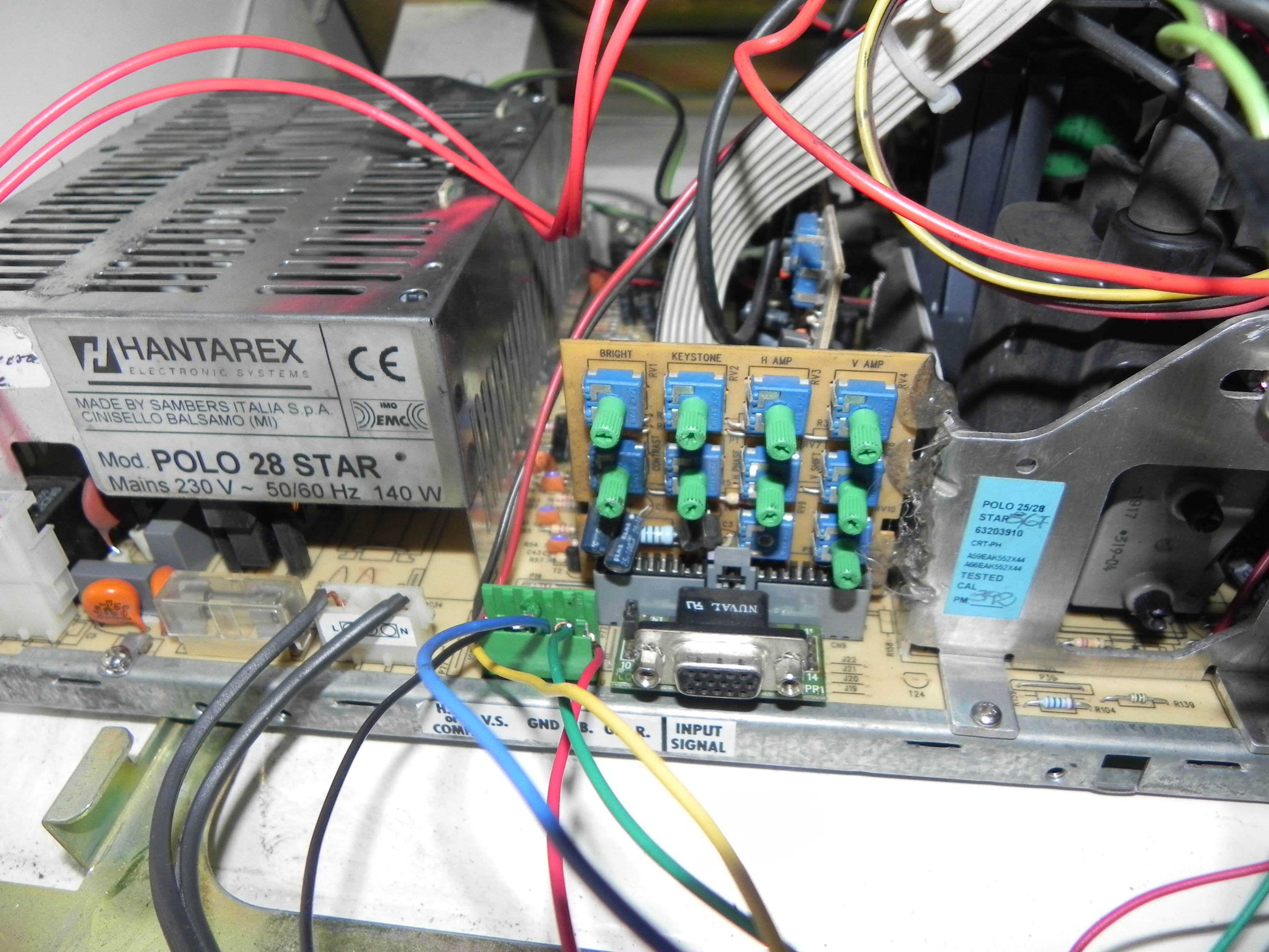 Que tal, estuve leyendo más detenidamente el manual y vi que detrás de esos potenciometros hay otros, entonces pude solucionar a medias mi problema, me explico, ya se abrió más la pantalla en horizontal, por lo que ahora si se juega completa, el problema es que el potenciometro que tiene h amp. ya no funciona o eso parece, ya que lo muevo y no pasa nada. Se que ese potenciometro es el que va a terminar de acomodar la imagen por que es el encargado de agrandar o achicar la imagen, pero la última vez que lo abrí por completo quedaron las curvaturas, ahora solo tendría que bajarle para que se acomoden bien, cómo puedo saber si funciona o creen que haya alguna manera de "reactivarlo" por así decirlo? Dejo la misma imagen del principio para que no tengan que regresarse :P