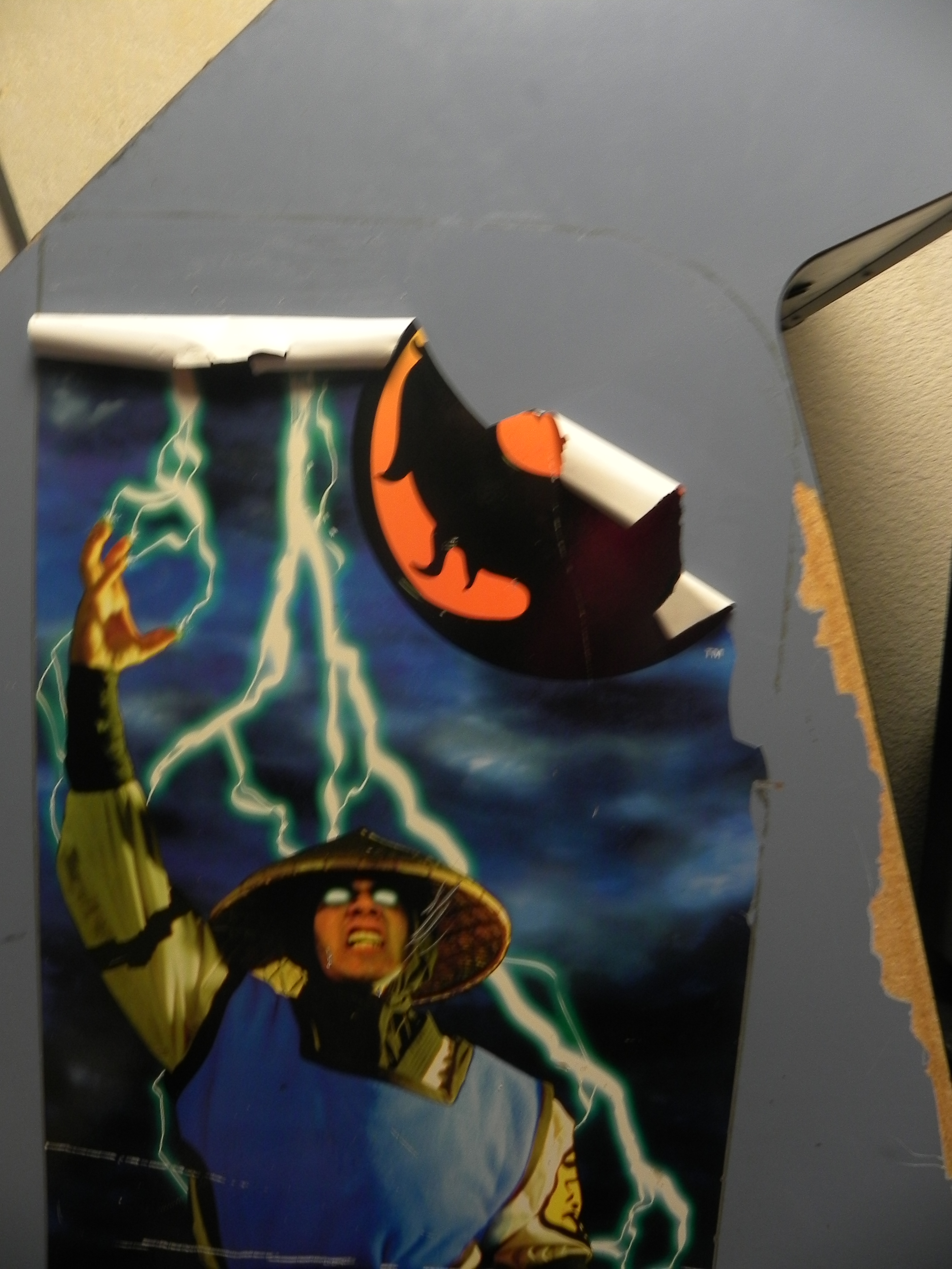Como no me gusto el resultado con el resistol, para los demás paneles, solo lijé la madera junto con el vinil viejo para emparejar y sin duda quedó mucho mejor, así que repetí esto para los paneles laterales de un solo lado. Después con ayuda de mi papá, pegamos los viniles nuevos. Como verán el azul lo cambié por negro, incluso en esta parte podrán notar unas lineas raras, el problema es que trabajar con vinil adhesivo en medidas tan grandes, nos resultó complicado y hubo pequeños errores, que tienen solución claro, ademas de que pegaré arte de street fighter 2, por lo que no se verán esos errores.