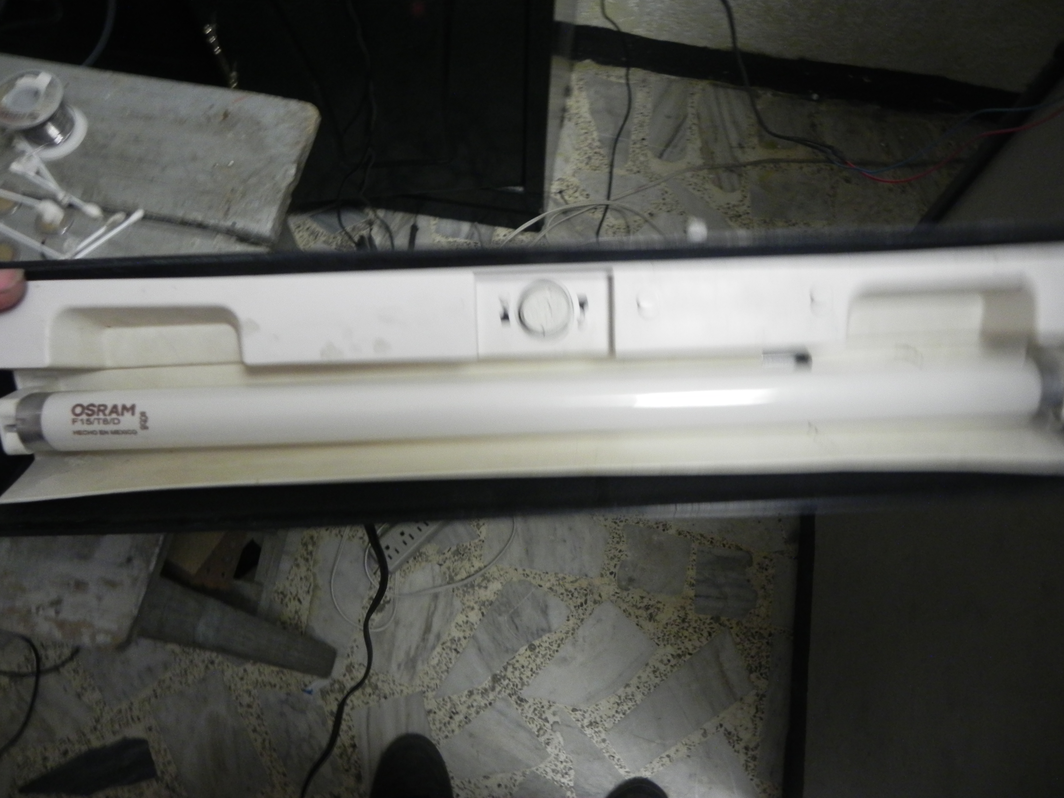 Para la lampara encontré una que le quedó muy bien, era de una pecera pero la dejaron de usar, así que aproveché :D