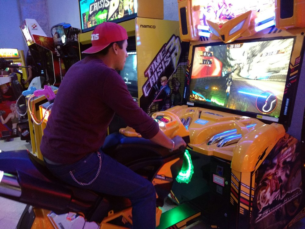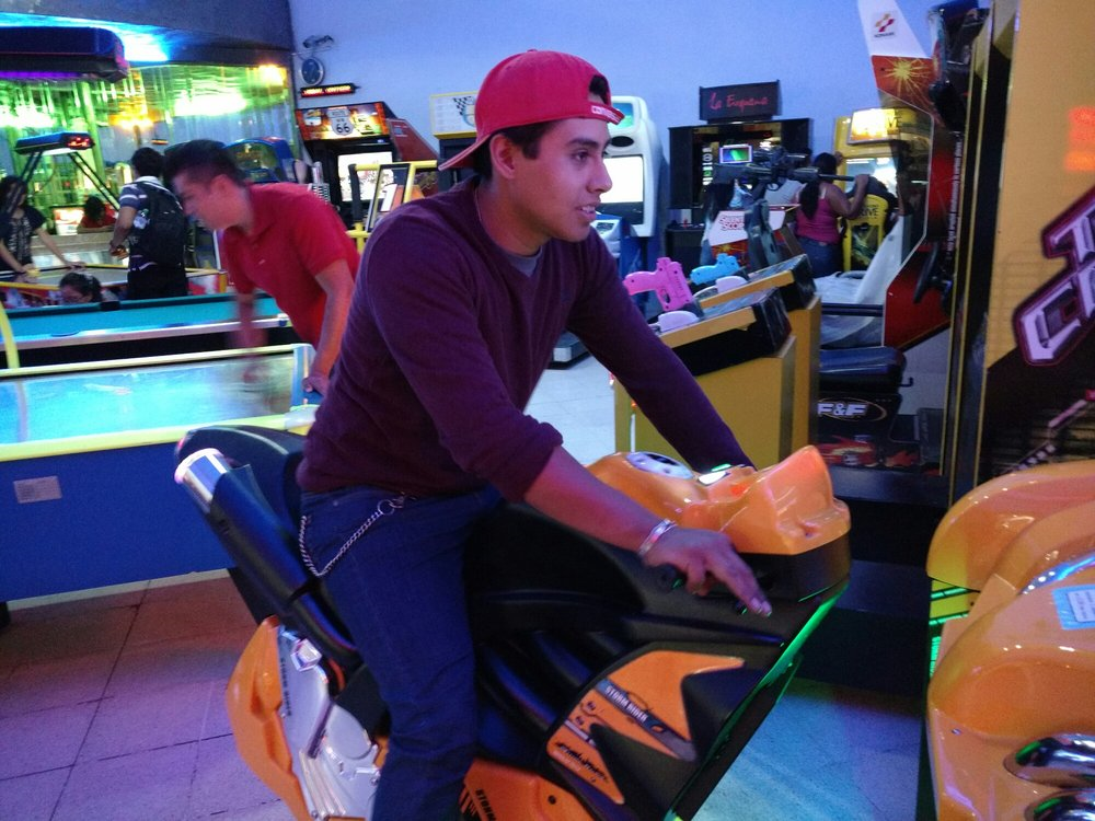 Un buen recuerdo de lo que fueron los grandiosos video juegos en los 90. Varias generaciones los recordaran con mucho anhelo ya que la mejor sucursal se ubicaba en la calle de Independencia, muy cerquita de la Alameda. No había mejor emoción que meterse a jugar de todo tipo de maquinitas y simuladores de acción, hasta que las famosas consolas los fueron opacando hasta desaparecer, pero por fortuna para los pequeños y no tan pequeños de estos días, está este local ubicado en el interior de plaza del valle. Ideal para que se distraigan un rato jugando con los simuladores de autos, motos o mesas de discos. Esta muy bien adecuado y con el concepto de siempre. Lo único triste es que las maquinitas desaparecieron y la sensación y adrenalina de jugar en un lugar como lo fueron los establecimientos de antaño se ha perdido casi en su totalidad, a parte los viejitos como yo ya no se ven bien haciendo sonar los controles.