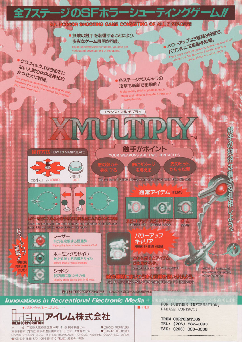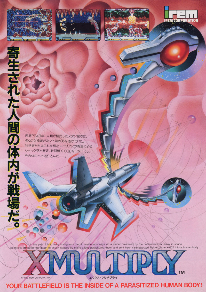 A continuación les presento un raro y obscuro shooter horizontal para un solo jugador (o dos alternando) desarrollado y publicado por Irem en 1989; las gráficas, música y efectos de sonido están bastante bien para su época pero lo más destacado es su jugabilidad, ya que contamos con dos brazos flexibles que además de disparar son invulnerables al toque de cualquier enemigo y los podemos posicionar de acuerdo al movimiento de nuestra nave para protegernos o causar daño; Xexex de konami es una mezcla entre el clásico R-Type y este juego. Este shooter ha sido menospreciado en algunas reseñas de Shmups.com porque se le ha comparado con R-Type pero es un buen juego.