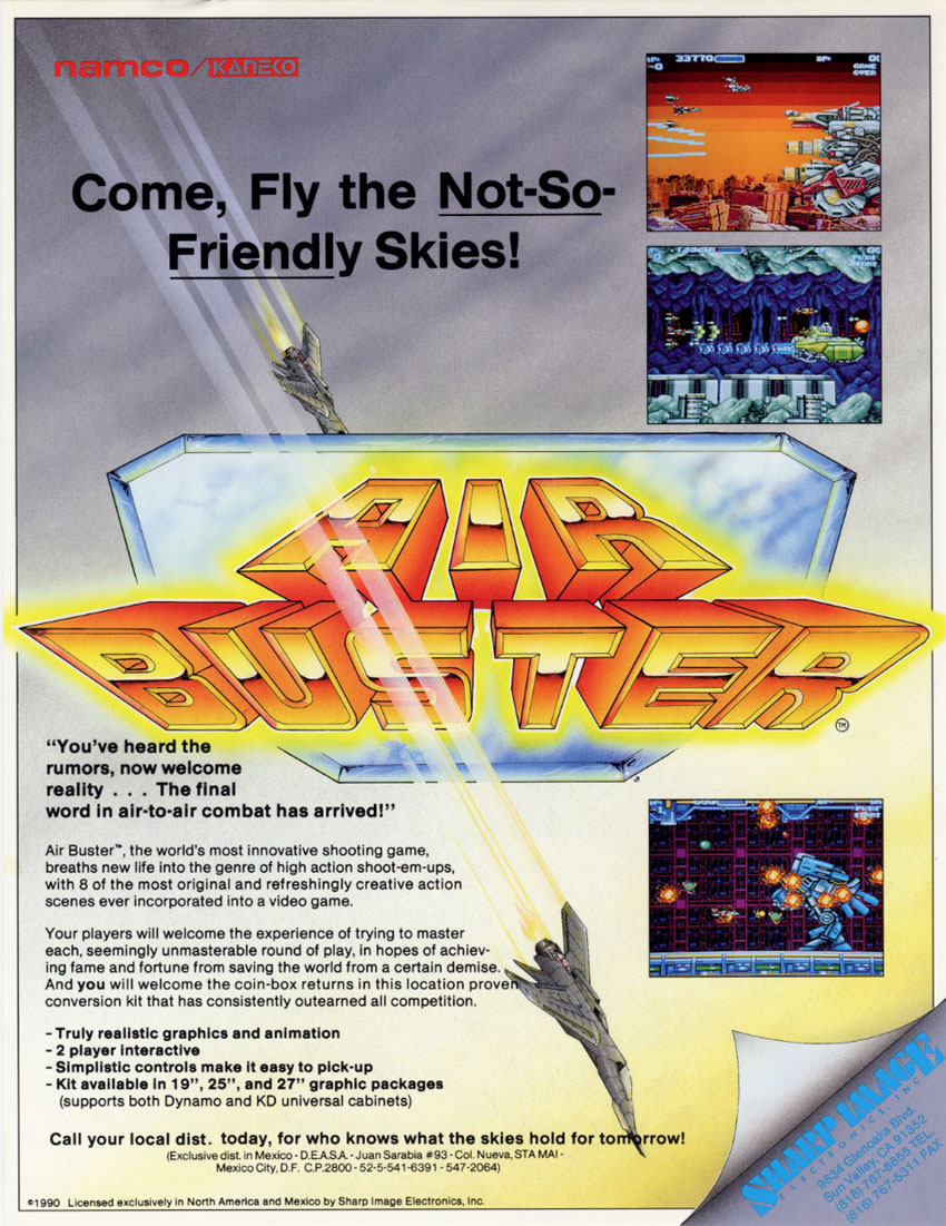 Siguiendo con los shmups y poniéndonos un poco más serios, a continuación les presento este exponente horizontal para dos jugadores simultáneos desarrollado por Kaneko y publicado por Namco/Kaneko en 1990; el hecho de que sea para dos jugadores es algo muy novedoso para la época de su lanzamiento. Los gráficos, la música y la jugabilidad están bastante bien; no es un maniac shmup por lo que resulta recomendable para aquellos que quieren comenzar a incursionar en el género.