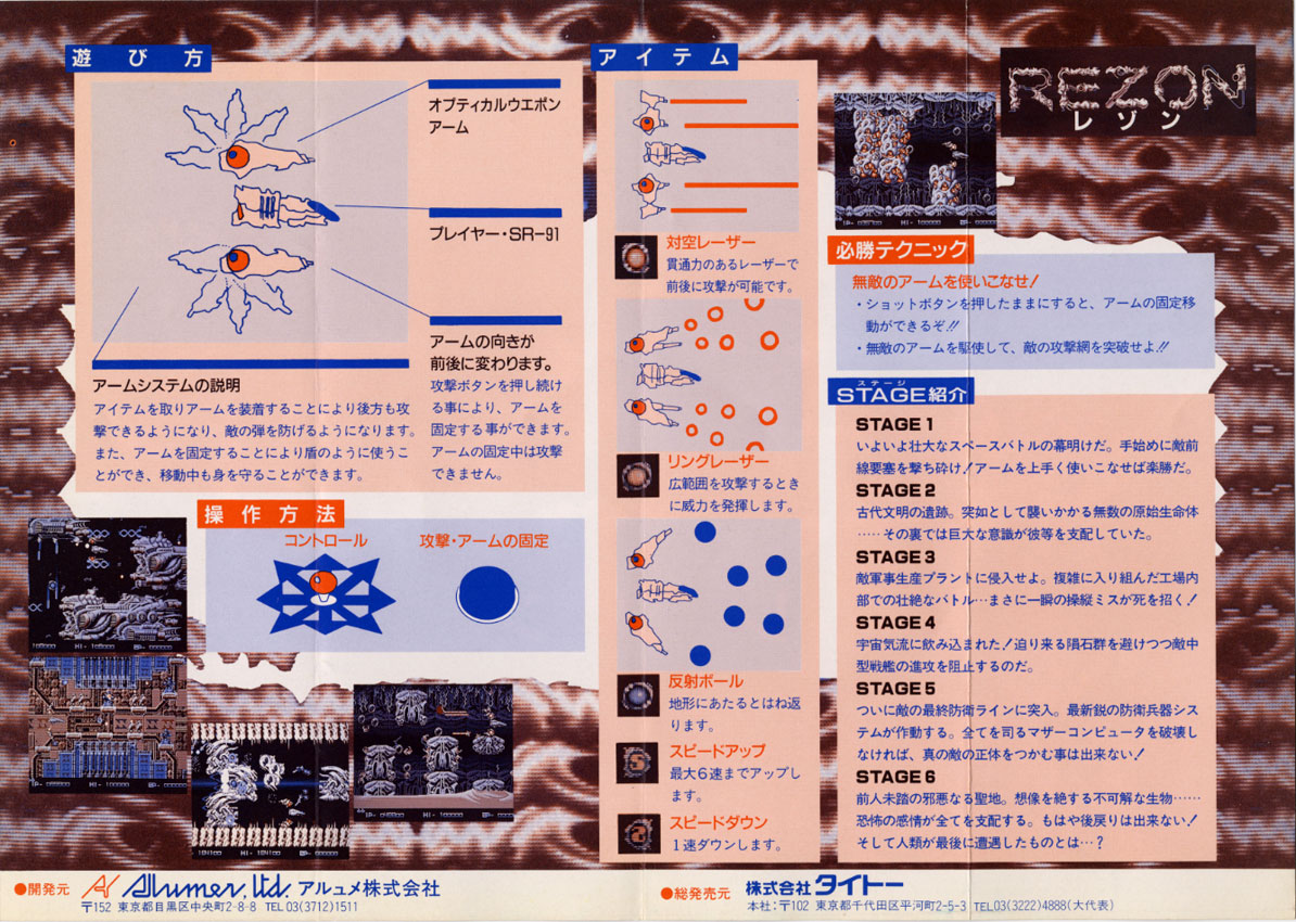 El juego cuenta con 6 niveles o faces, cada una con su respectivo jefe, y a lo largo del desarrollo del juego podemos escoger de entre 7 armas distintas. Fue porteado para Sega Génesis y Turbografx 16; de esta última consola bajo el nombre de Aero Blasters. El port de Sega Genesis/Megadrive es destacable.