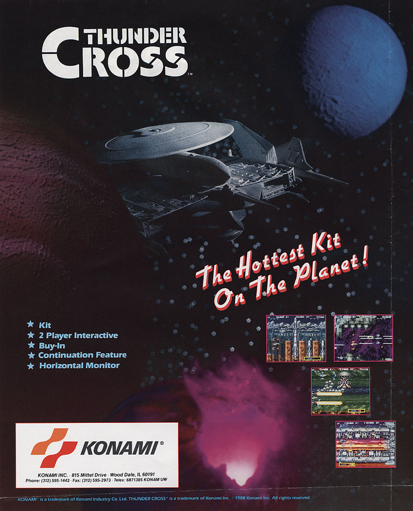 Estos dos excelentes shooters de naves de scroll lateral para dos jugadores simultáneos, fueron desarrollados y publicados por Konami en 1988 y 1991, respectivamente. Las gráficas, la música y la jugabilidad son excelentes; la primera parte de la saga fue porteada a PS2 en Japón, mientras que la segunda no ha sido porteada, lo cual es una lástima porque si la primera parte es muy buena, la segunda es todavía mejor; además de que Thunder Cross II es raro de ver, y cuando logramos encontrarlo no es precisamente económico.