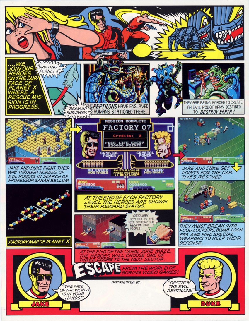 El plot nos narra que los malvados Reptilons han invadido y tomado el control del Planetoide Industrial X, y han secuestrado y esclavizado a todos los humanos que ahí laboran para obligarlos a construir un ejercito de robots con el que planean conquistar la Tierra. Nuestros héroes Duke y Jake, quienes pertenecen al equipo SWAT interplanetario, tienen la misión de detener a los malvados Reptilons y sus robots, y echarlos del Planetoide; liberar a todos los humanos que puedan y rescatar específicamente a la Dr. Sara Bellum, una voluptuosa científica que dirigía las operaciones e investigación en el Planetoide Industrial X.