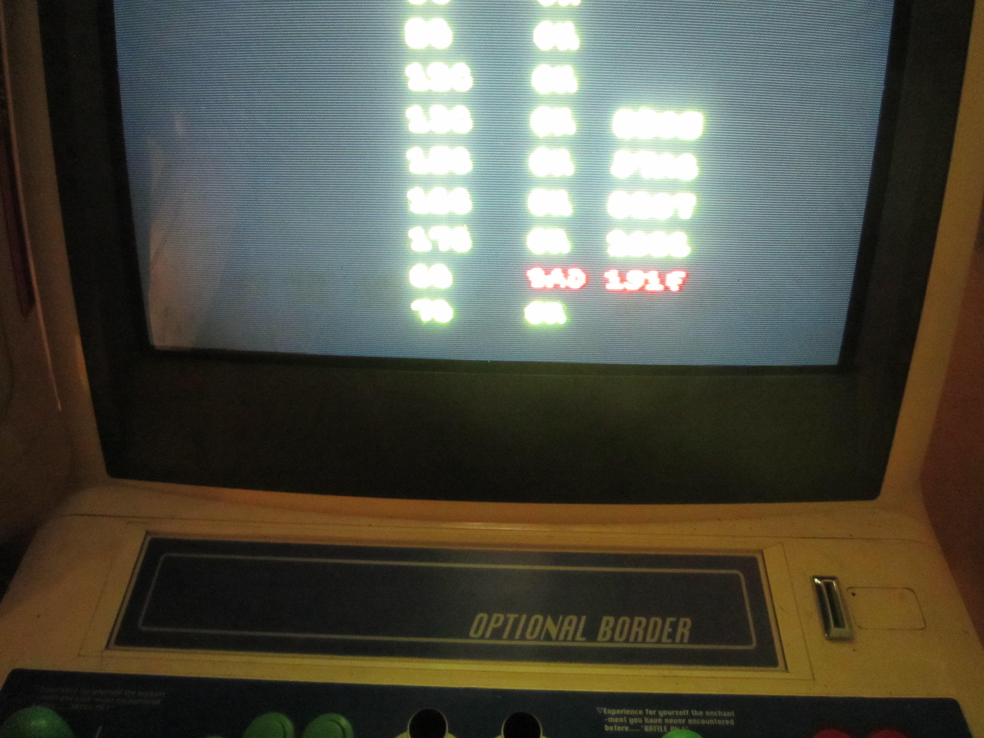 Bueno, vamos por partes. Probé mi ejemplar de Simpsons, y la posición que está fallando es la 60. Normalmente en este tipo de pruebas se revisa la parte en cuestión y se denominada por su posición en la PCB. Por ejemplo, la 1J esta ubicada en el "renglón" 1 columna "J". Aquí una foto de la pantalla de diagnóstico al arrancar: