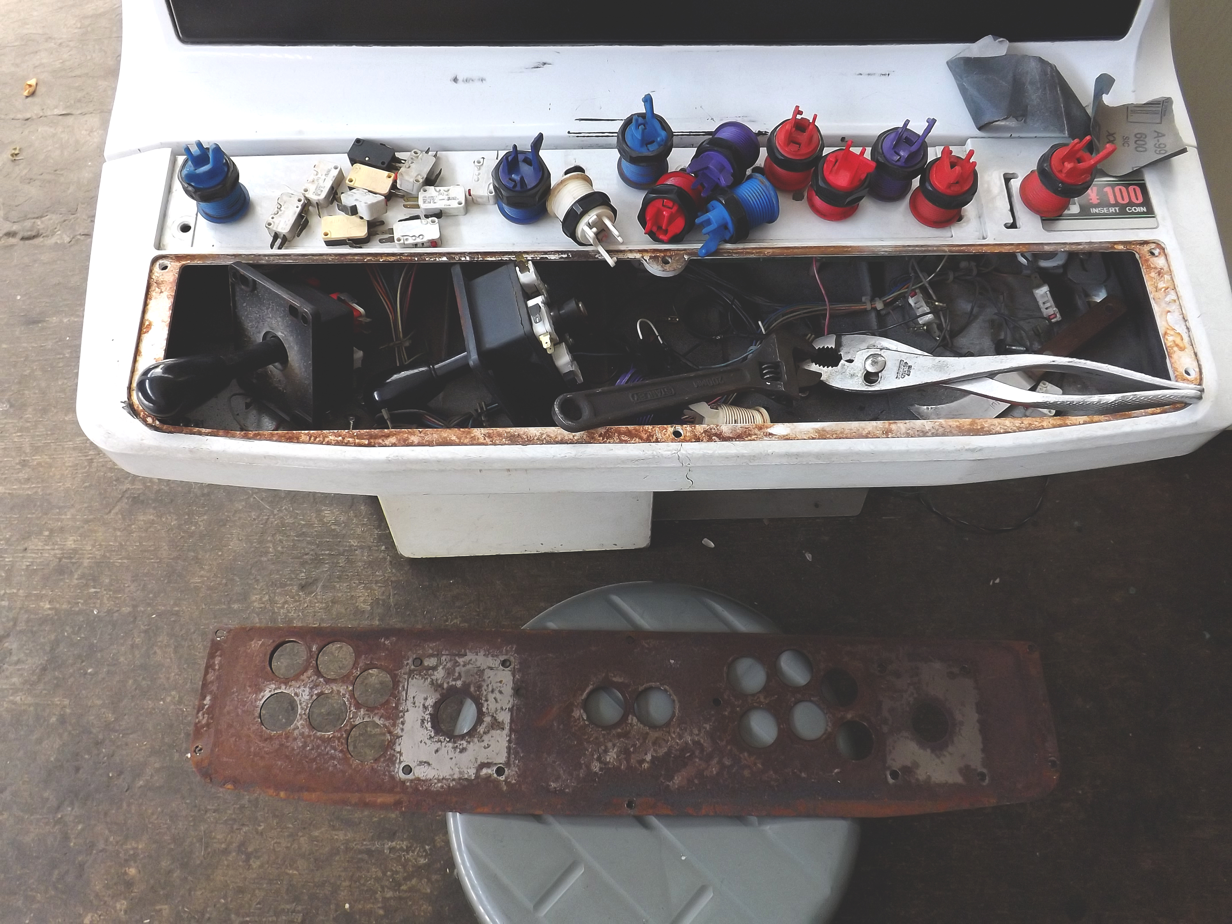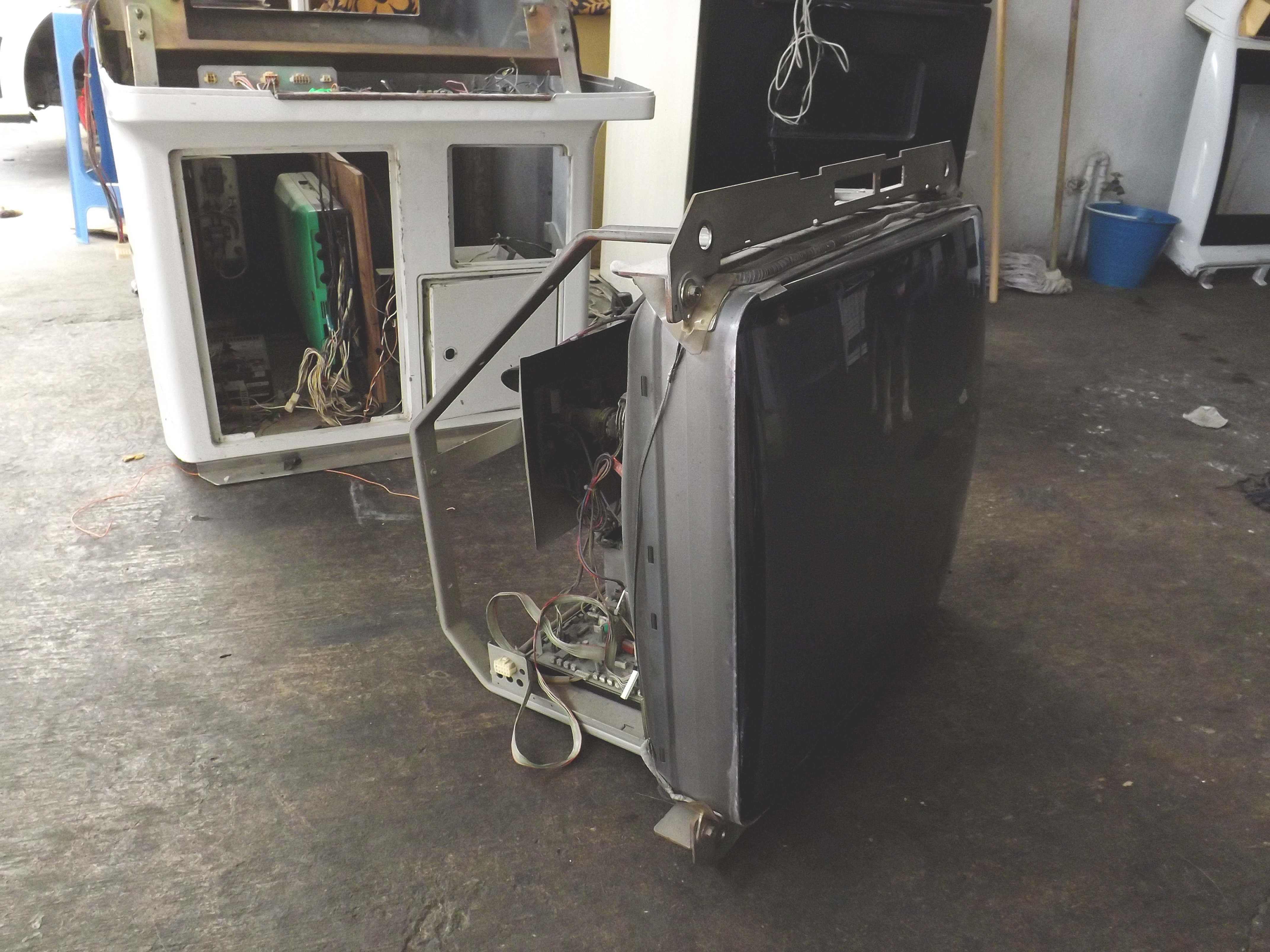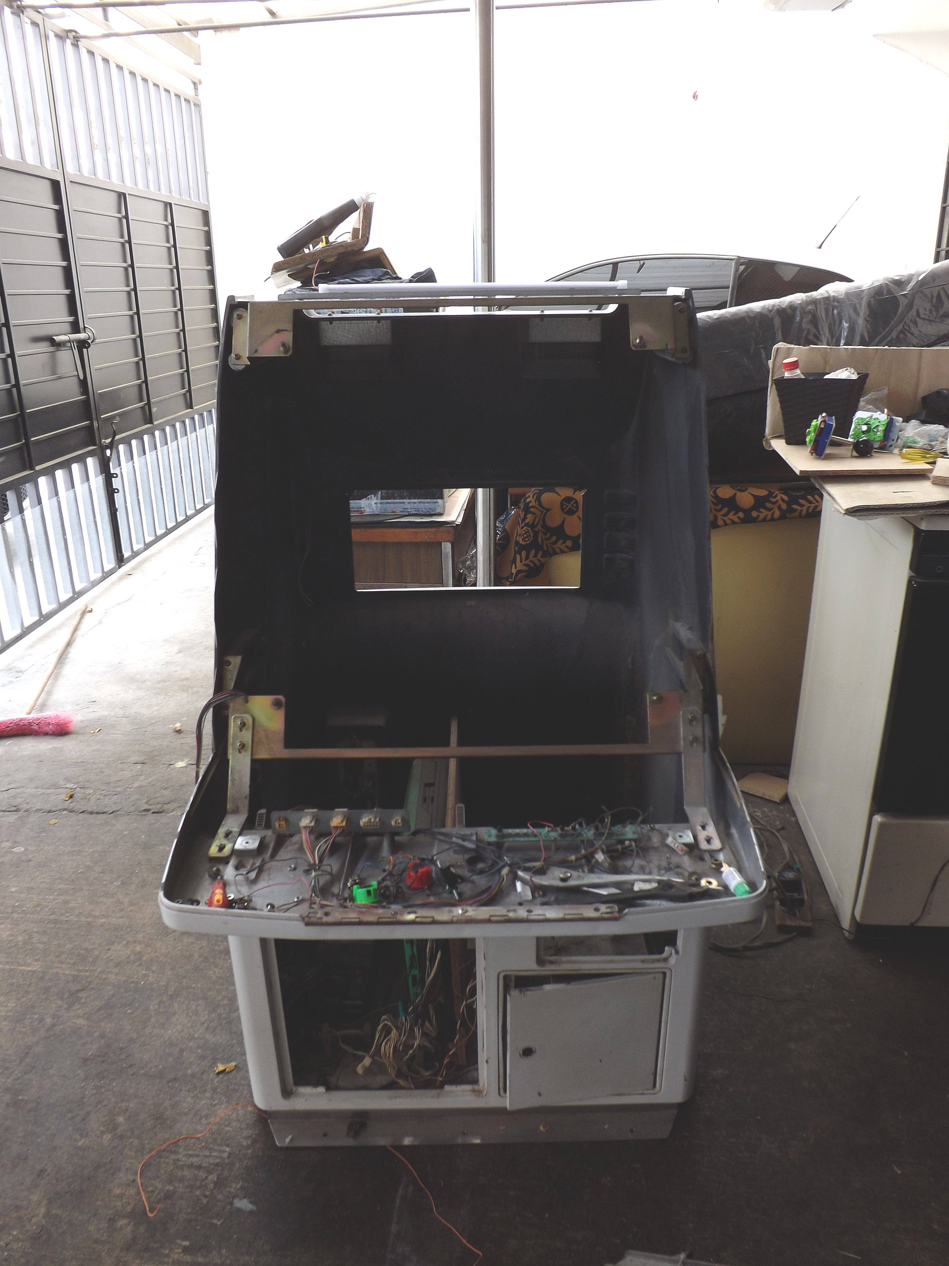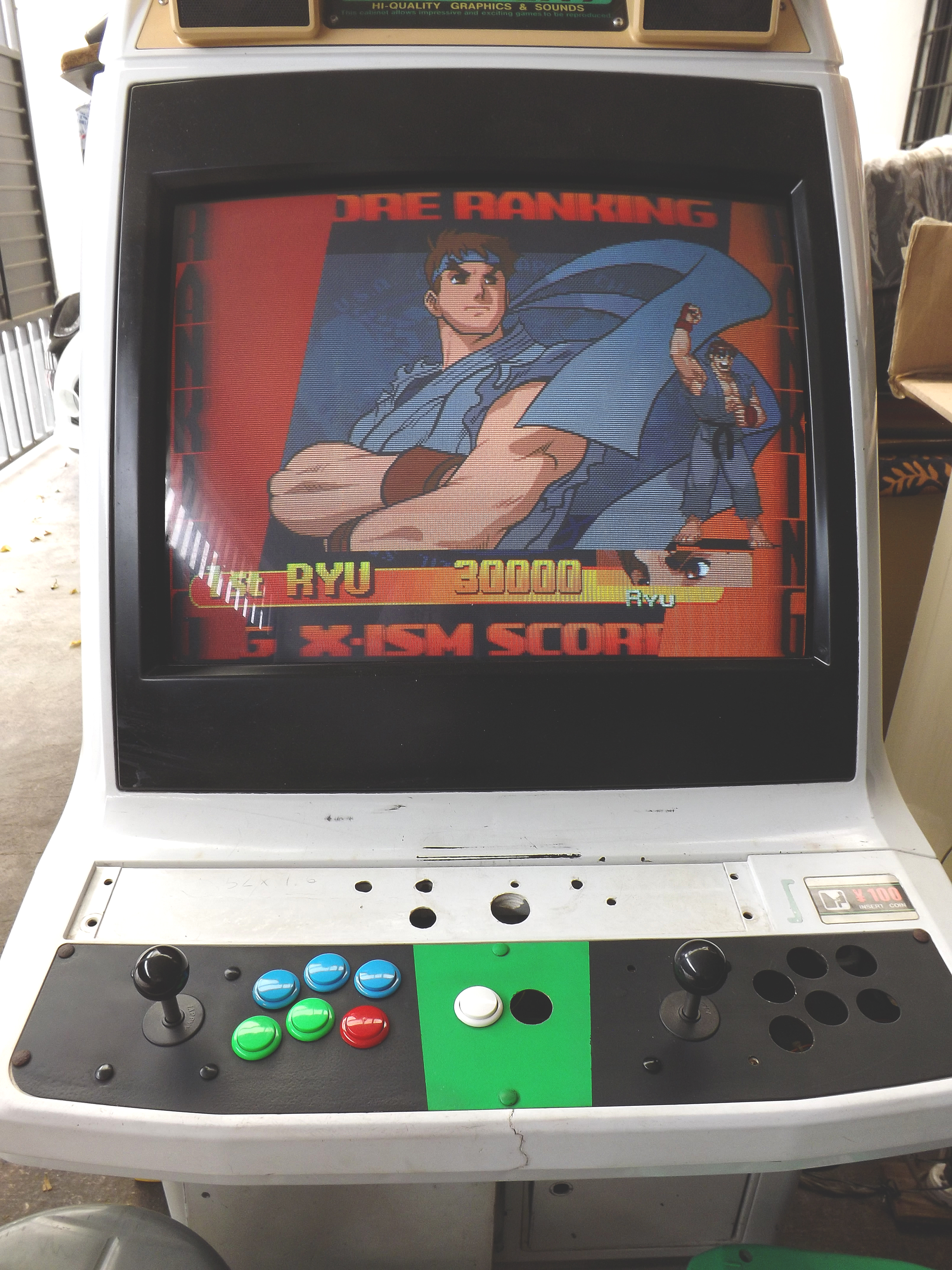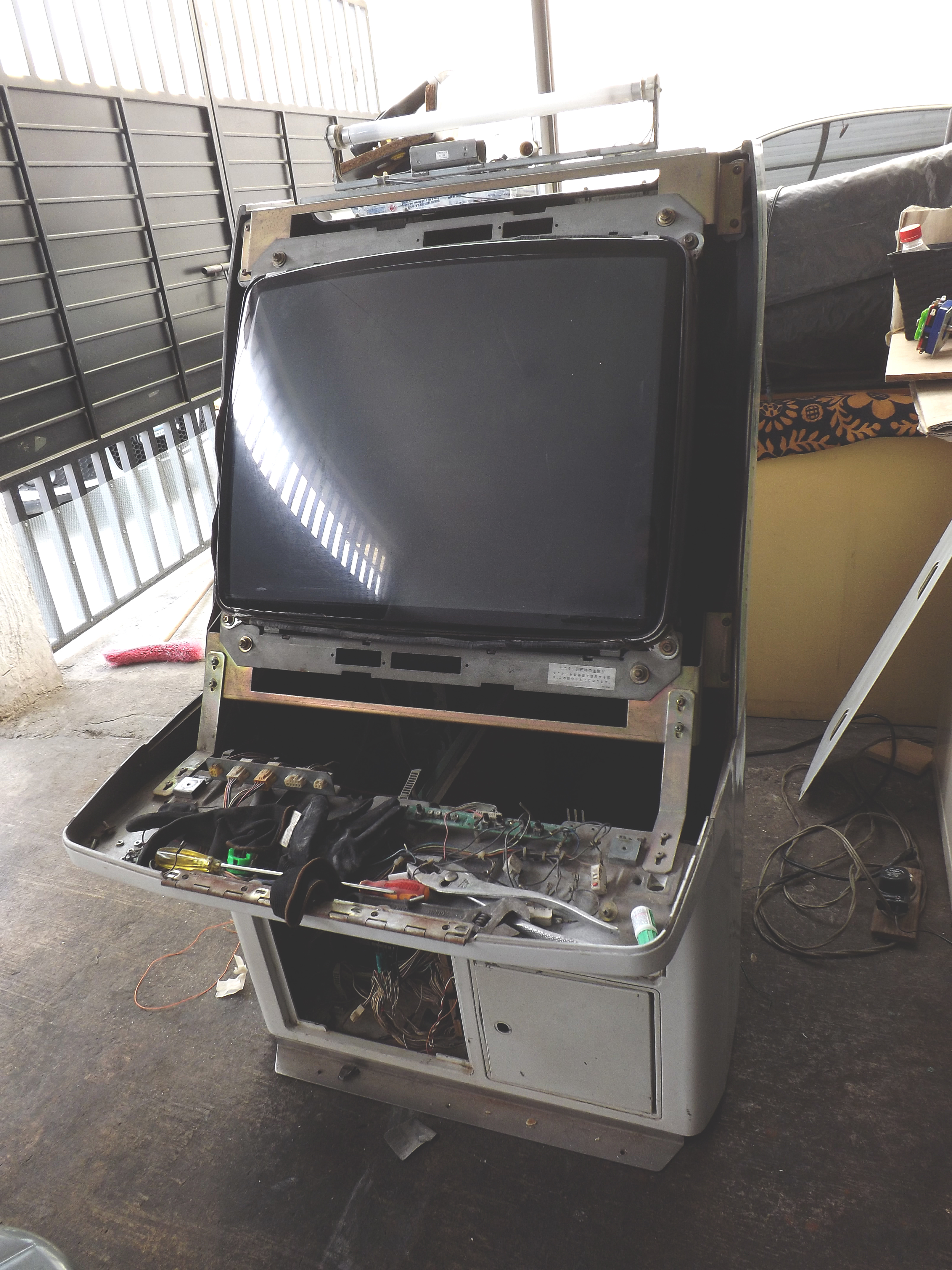 Gracias o todos los que aportan al sitio, sin ustedes no tendría esta maquina, la encontré en mercadolibre en las fotografias el monitor se veía magnetizado con dos manchas grandes, aun así decidí comprarla sabiendo que seria muy difícil encontrar un monitor de remplazo, negociando tuve suerte de obtenerla por 6000 con MvC jap de regalo y envío incluido ya que los precios están despegando, al probar la maquina descubri que el monitor ya no estaba magnetizado y los unicos defectos que tiene son una grieta en el tablero muy común en los astro city (que aun no reparo), rayas y manchas en el monitor que son casi imperceptibles en un cuarto obscuro, aun le faltan detalles como cambiar algunos botones, instalar chapas para los seguros del tablero o tornillos nuevos.